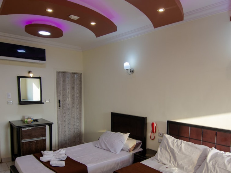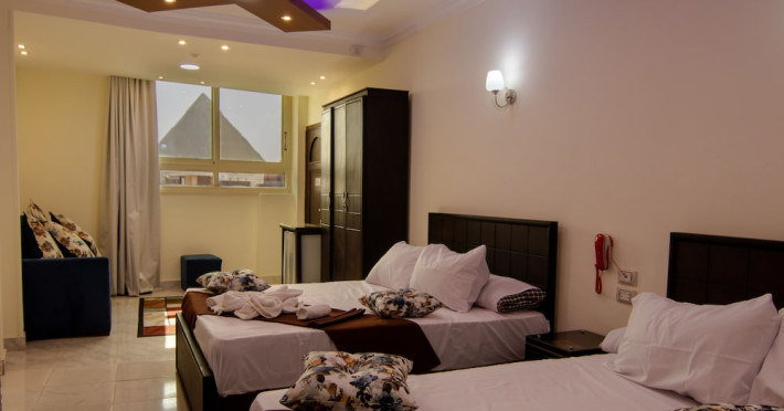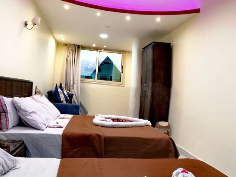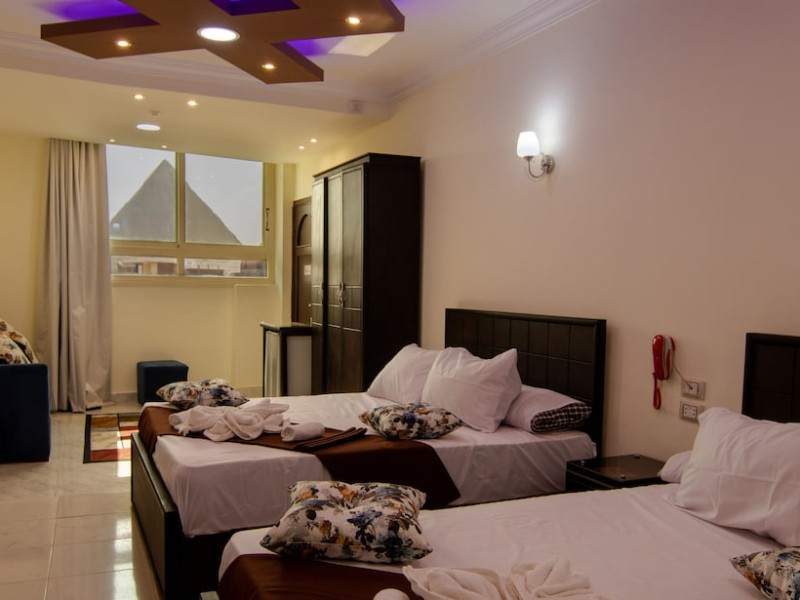 Located in Giza, Horus Guest House Pyramids View is within a 15-minute drive of Great Sphinx of Giza and Pyramids at Giza. This guesthouse is 11.6 mi (18.7 km) from Hanging Church and 12.5 mi (20.1 km) from Coptic Museum. Make yourself at home in one of the 5 air-conditioned rooms featuring minibars and flat-screen televisions. Complimentary wireless Internet access keeps you connected, and cable programming is available for your entertainment. Bathrooms have showers and complimentary toiletries. Conveniences include safes and complimentary bottled water, and housekeeping is provided daily. Take in the views from a rooftop terrace and make use of amenities such as complimentary wireless Internet access and concierge services. Guests can catch a ride to nearby destinations on the area shuttle (surcharge). Satisfy your appetite at the guesthouse's coffee shop/café, or stay in and take advantage of the room service (during limited hours). Quench your thirst with your favorite drink at the bar/lounge. A complimentary local cuisine breakfast is served daily from 8 AM to 9 AM. Featured amenities include dry cleaning/laundry services, a 24-hour front desk, and multilingual staff. A roundtrip airport shuttle is provided for a surcharge (available 24 hours).
