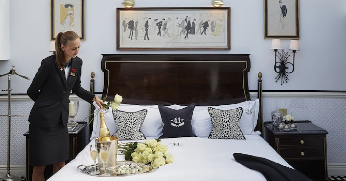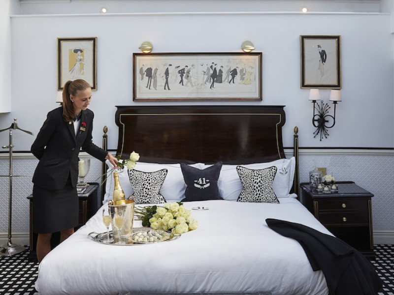 Located near Buckingham Palace and Victoria Station, this luxurious boutique hotel offers stylish and individually decorated rooms. Each room features air conditioning, an iPod docking station, a minibar, a plasma TV, complimentary Wi-Fi, and a private bathroom with designer toiletries. Guests can enjoy multiple dining options, including an award-winning restaurant and an Executive Lounge that offers complimentary snacks and afternoon tea. Concierge services and complimentary Wi-Fi are available for added convenience. The Hotel 41 is a Tourist hotel. The nightlife/restaurants are located in the hotel.