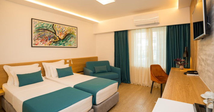 Centrally located Hotel Admiral is 300 meters from Slovenska Beach and a short walk from the Adriatic Fair Grounds. It features an outdoor pool with sun chairs and shades, free WiFi, and air-conditioned rooms with plasma TVs, cable channels, minibars, and hairdryers. Some rooms offer balconies. Bike rentals are available on-site. The hotel offers an international menu and local specialties at its restaurant, as well as an aperitif bar. Additional services include car rental, a tour desk, packed lunches, and airport pickup (surcharge applies). Mogren Beach is 1.5 km away, Tivat is a 25-minute drive, Lovcen National Park is 45 minutes away by car, and Skadar Lake is 40 km away. The Hotel Admiral is a hotel.