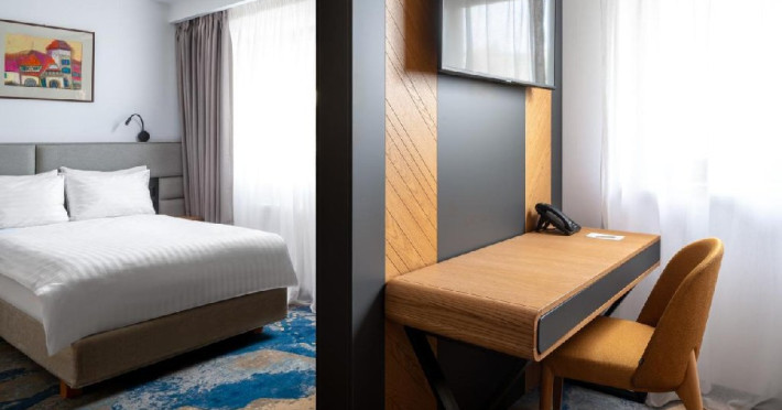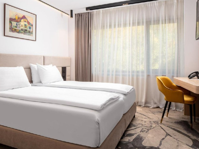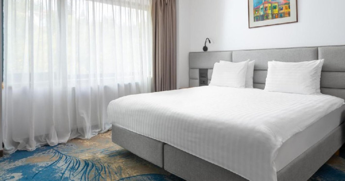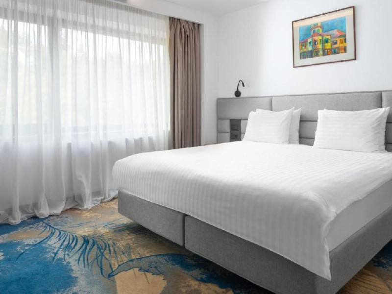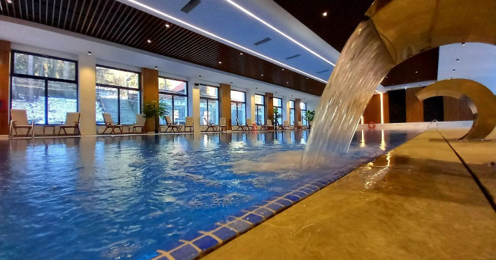 INFORMATII GENERALE Hotel Alexandrion Experience - fost Hotel New Montana este situat in centrul orasului Sinaia foarte aproape de cele mai importante atractii ale statiunii, fiind alegerea perfecta atat pentru cei care doresc o escapada romantica, pentru familiile cu copii sau pentru oamenii de afaceri. DESCRIERE UNITATE DE CAZARE Hotelul Alexandrion Experience nu este doar un simplu loc de cazare, ci o destinatie completa, perfecta pentru a trai momente speciale si a te bucura de o experienta cu adevarat memorabila. FACILITATI UNITATE Hotelul dispune de parcare (contra cost), trei restaurante cu specific romanesc, italian si japonez, sali de conferinte si piscina interioara. DESCRIERE CAMERE Camerele single si junior suite single pot fi folosite doar in regim single si nu au balcon. Camerele deluxe fara balcon au vedere spre munte, iar cele cu balcon au vedere spre centrul orasului Sinaia. Princess Suite si Duke Suite dispun de dormitor si living cu canapea neextensibila. Doar Princess Suite ofera balcon. Camerele ofera urmatoarele facilitati: cana fierbator, ceai si cafea, baie cu dus/cada, seif, telefon, halat de baie si papuci (pentru adulti), masa de lucru, uscator de par, cosmetice, uscator de prosoape. LOCALIZARE Hotel Alexandrion fost Hotel New Montana se afla in centrul statiunii, la aproximativ 300 m de Castelul Stirbey, accesul fiind foarte facil din DN 1. ATRACTII TURISTICE Castelul Peles, Castelul Pelisor, Castelul Stirbey, Manastirea Sinaia, Cazinoul Sinaia, Casa Memoriala George Enescu. POLITICI Nu se accepta animale de companie. SERVICII DE MASA De la mancaruri italiene autentice pana la delicii romanesti si preparate aromate din bucataria japoneza, restaurantele hotelului ofera un trio de experiente gastronomice. Restaurant Suman - specific romanesc Restaurant Del Chiaro - specific italian Restaurant Benihana - specific japonez FACILITATI COPII Copiii mai mari de 6 ani se pot caza in suite. FACILITATI EVENIMENTE Hotelul Hotel Alexandrion fost Hotel New Montana pune la dispozitia celor care calatoresc in interes de afaceri trei sali de conferinte: -Sala Carpathian 250 locuri teatru; -Sala Reihn 80 locuri teatru; -Sala Brincoveanu 40 locuri teatru.
