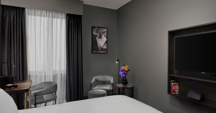 AMANO Covent Garden, an eco-certified hotel in London's City Centre, offers 141 air-conditioned rooms with Smart TVs, complimentary Wi-Fi, and satellite programming. Each room includes a laptop-compatible safe, phone, and bathroom with complimentary toiletries and a hairdryer. Daily housekeeping is provided. Hotel amenities include a 24-hour front desk, luggage storage, a safe deposit box, a restaurant, and two bars/lounges. A buffet breakfast is available for a fee (7:00 AM - 11:00 AM daily). Concierge services and on-site shopping are also available. The hotel is steps from the Royal Opera House and within a short walk of Covent Garden Market, The Strand, King's College London, The British Museum, Leicester Square, and other central London attractions. Nearby airports include London City (LCY), Heathrow (LHR), Gatwick (LGW), Luton (LTN), and Stansted (STN). The Hotel AMANO Covent Garden is a hotel.