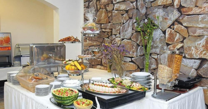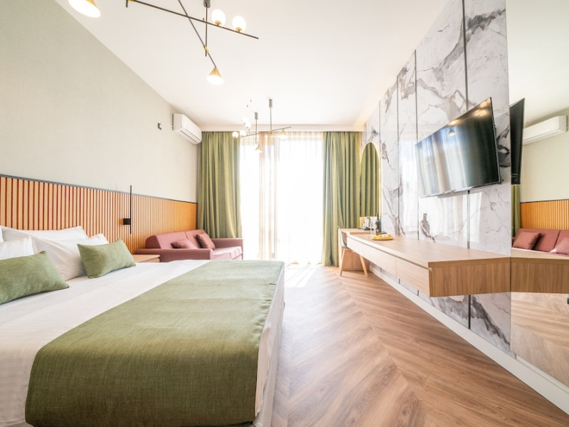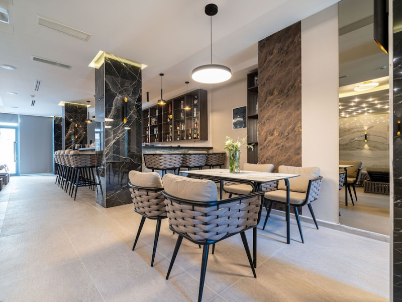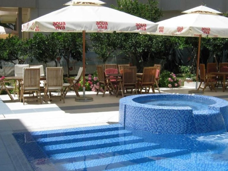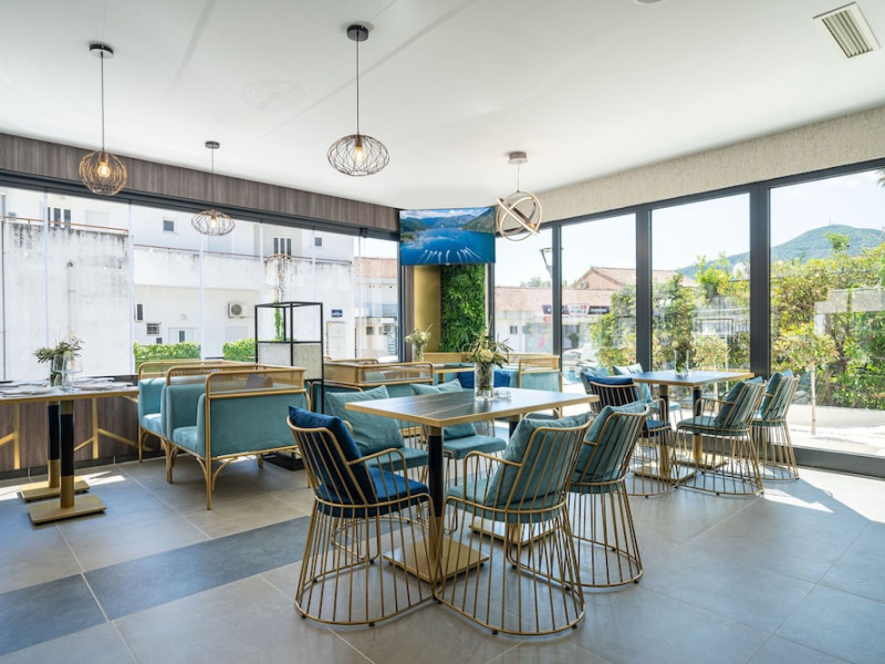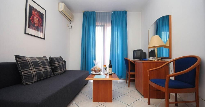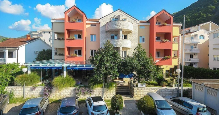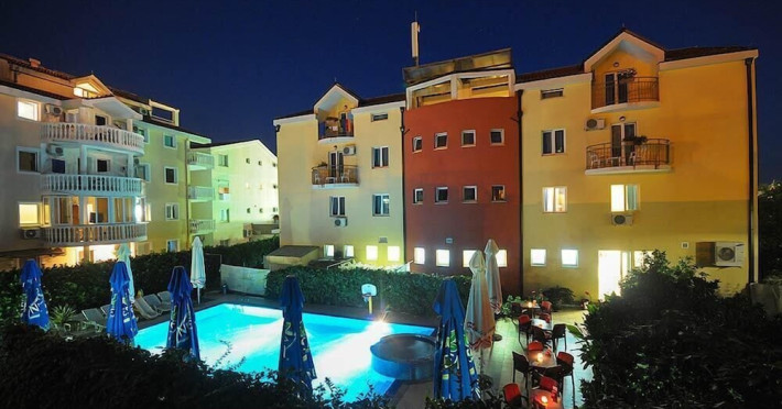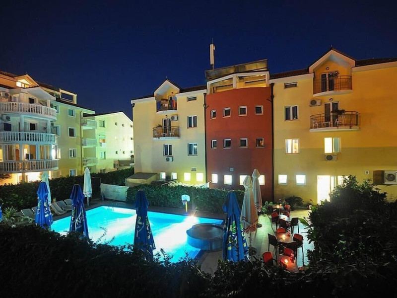 Hotel Aquamarin in Budva (Velji Vinogradi) offers air-conditioned guestrooms with complimentary toiletries and daily housekeeping. Guests can enjoy a restaurant, snack bar/deli, and a bar/lounge, as well as a complimentary local cuisine breakfast served daily from 7:30 AM to 10:30 AM. The hotel features a seasonal outdoor pool, sauna, complimentary wireless internet access, concierge services, a 24-hour front desk, luggage storage, and laundry facilities. A roundtrip airport shuttle is available for a surcharge, and free valet parking is provided onsite. Slovenska Beach is 0.7 mi (1.1 km) away. The Hotel Aquamarin Budva is a hotel.