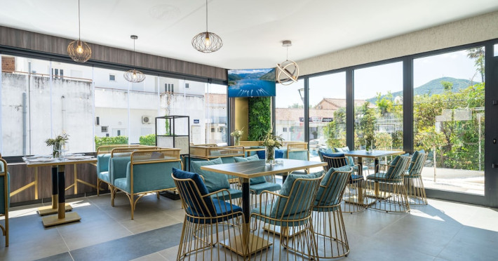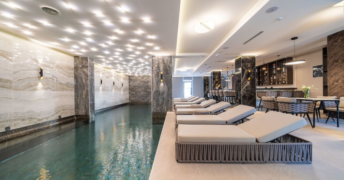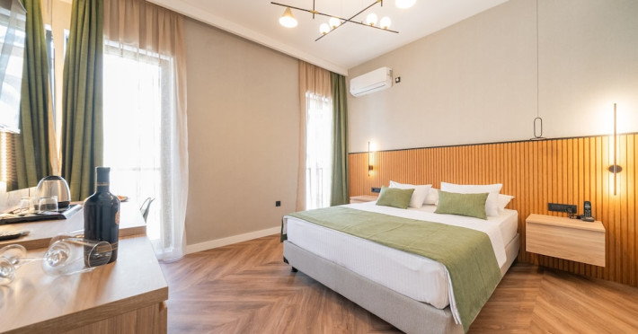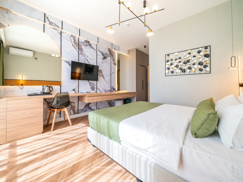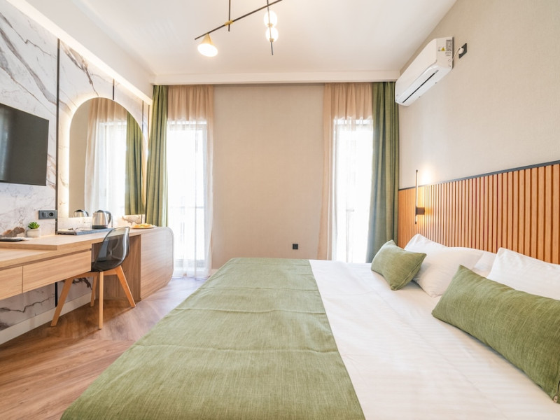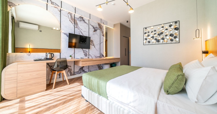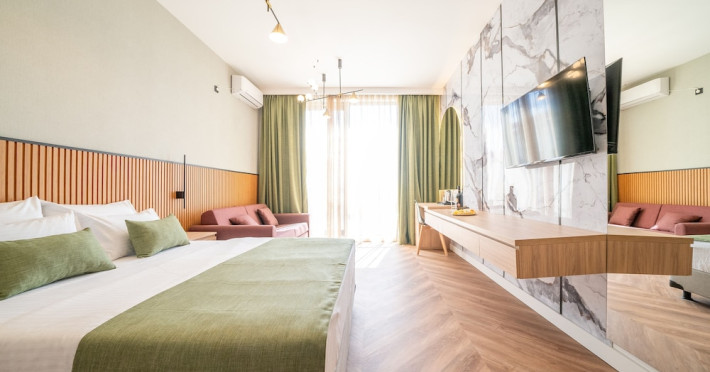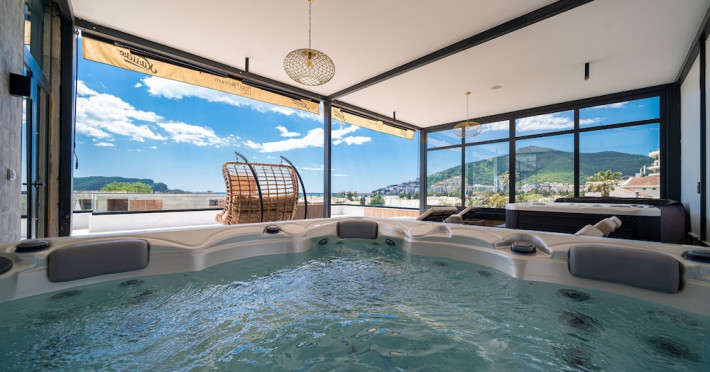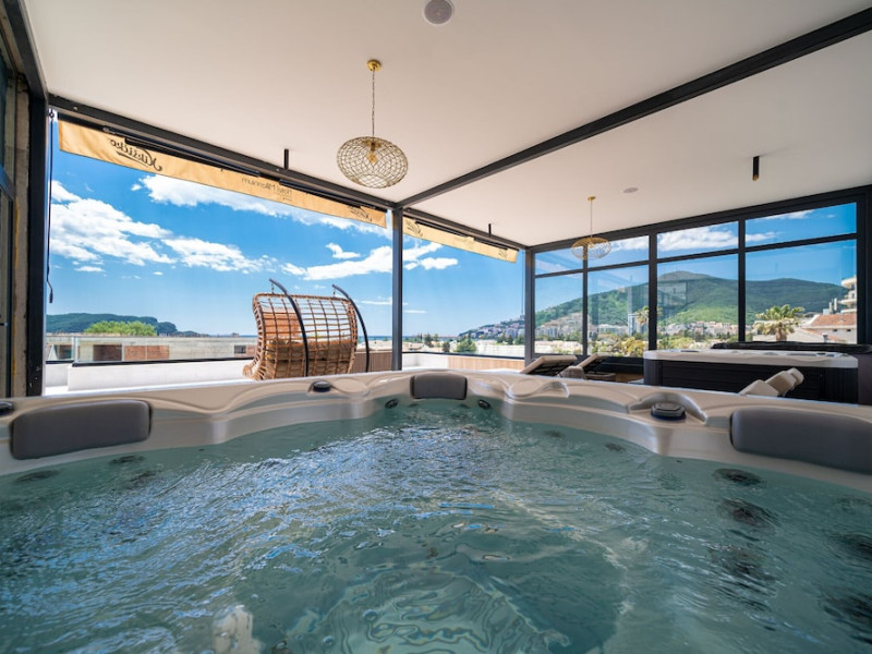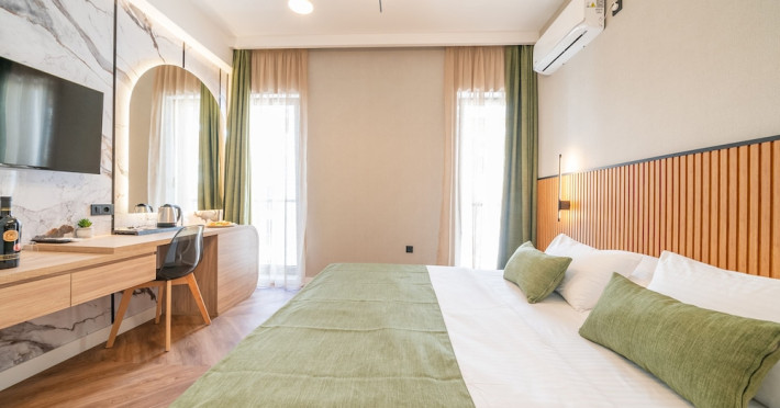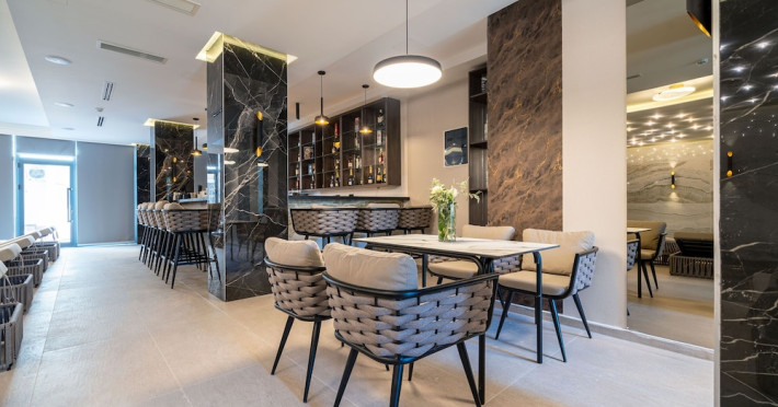 Hotel Aquamarin in Budva (Velji Vinogradi) offers air-conditioned guestrooms with complimentary toiletries and daily housekeeping. Guests can enjoy a restaurant, snack bar/deli, and a bar/lounge, as well as a complimentary local cuisine breakfast served daily from 7:30 AM to 10:30 AM. The hotel features a seasonal outdoor pool, sauna, complimentary wireless internet access, concierge services, a 24-hour front desk, luggage storage, and laundry facilities. A roundtrip airport shuttle is available for a surcharge, and free valet parking is provided onsite. Slovenska Beach is 0.7 mi (1.1 km) away. The Hotel Aquamarin Budva is a hotel.