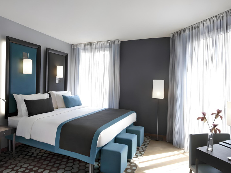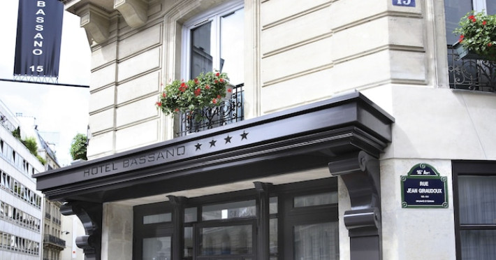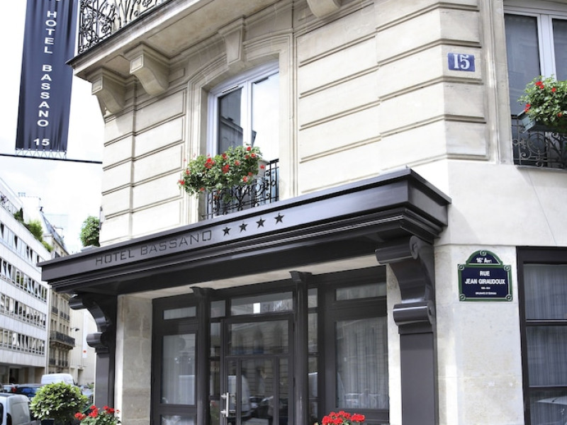 Hotel Bassano, a stylish Parisian retreat in the 16th arrondissement, is a short stroll from the Champs-Élysées and nestled between the 16th arrondissement and the Golden Triangle. This early 20th-century building boasts contemporary furnishings, light parquet floors, and abundant natural light. Its pale sky blue and grey slate facade exudes classic Parisian charm. The hotel offers 33 guestrooms, each featuring a Select Comfort bed, complimentary Wi-Fi, satellite programming, and a private bathroom with shower/tub combination, complimentary toiletries, and a hairdryer. Amenities include a 24-hour business center, limo/town car service, express check-in, concierge services, babysitting (surcharge), room service (limited hours), a bar/lounge, and a buffet breakfast (fee) served daily from 7 AM to 10:30 AM. A train station pick-up service (surcharge) and self-parking (fee) are available. Nearby attractions include the Arc de Triomphe, Place du Trocadéro, and Rue du Faubourg Saint-Honore, all within a 10-minute walk or less. The nearest airports are Paris Orly (ORY) and Paris Charles de Gaulle (CDG). Charles de Gaulle-Etoile Metro Station is conveniently located nearby. The Hotel Bassano is a Tourist hotel. The nightlife/restaurants are easily accessible by taxi or bus from the hotel.
