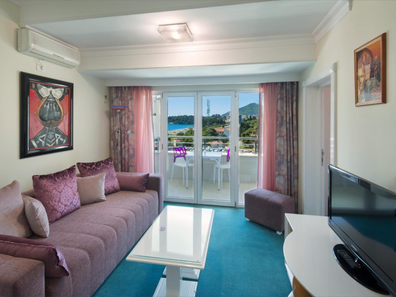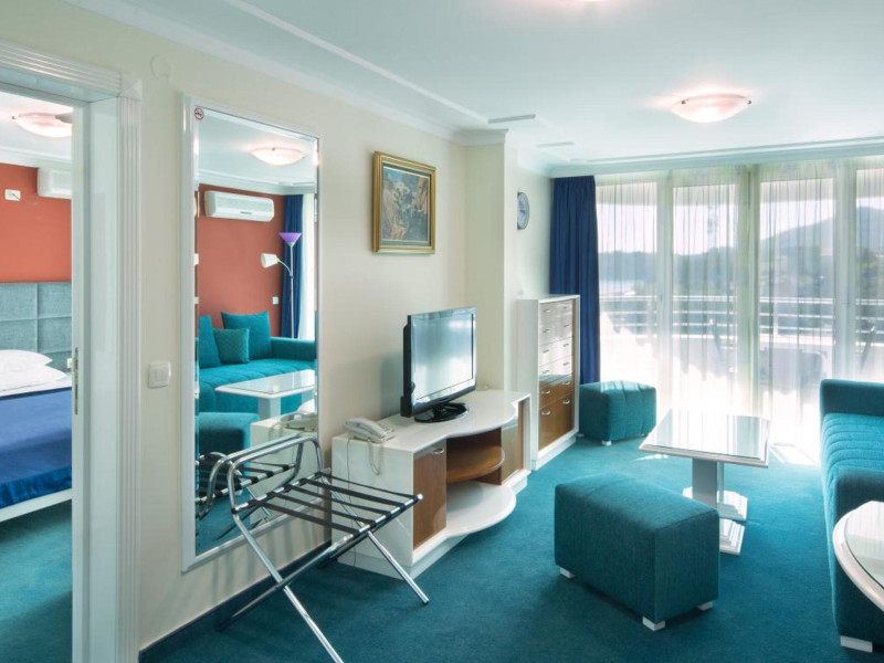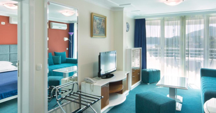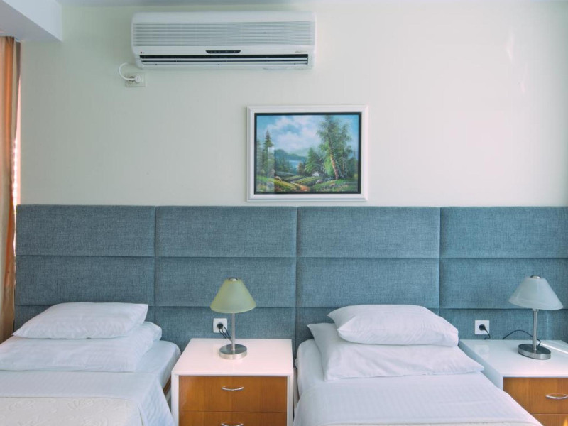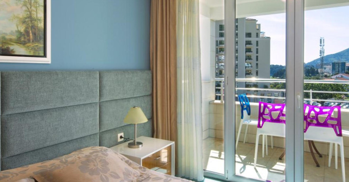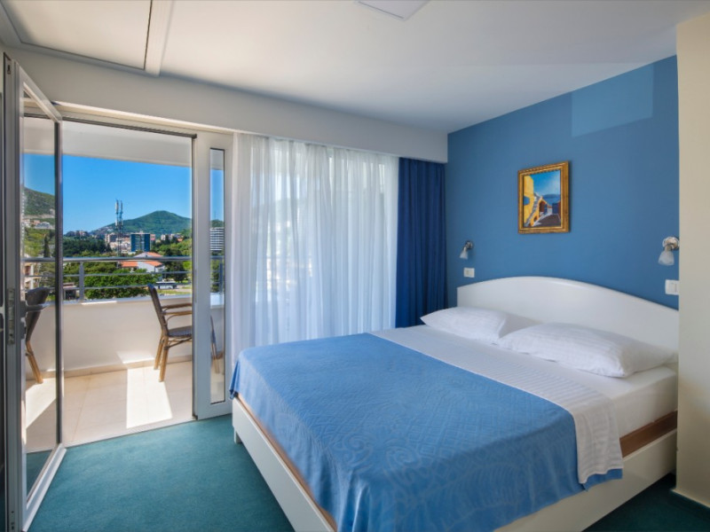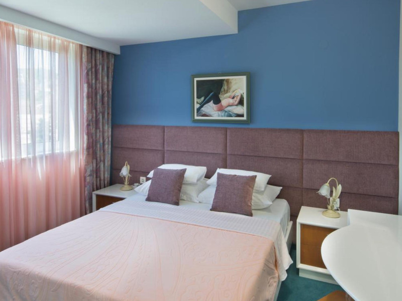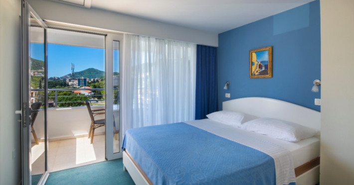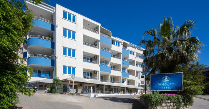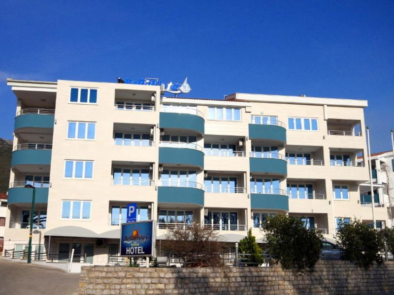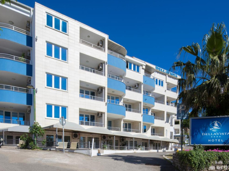 The 4-star Bella Vista is located 200 metres from Budva's beach on the Montenegrin coast and offers 35 air-conditioned rooms and apartments with LCD cable TV, free WiFi, a kitchenette, and a balcony. Guests can enjoy the sauna, hot tub, and gym. The restaurant serves national and international cuisine and features an open terrace. A café bar serving beverages and sweets is also available. The Hotel Bella Vista is a hotel.