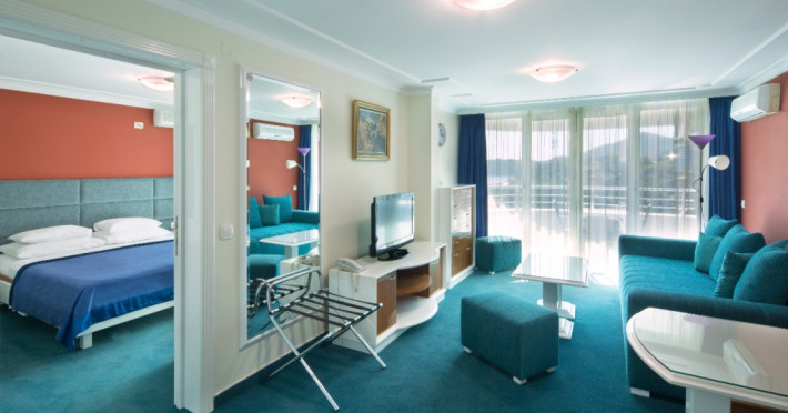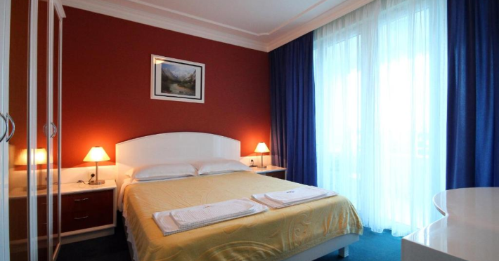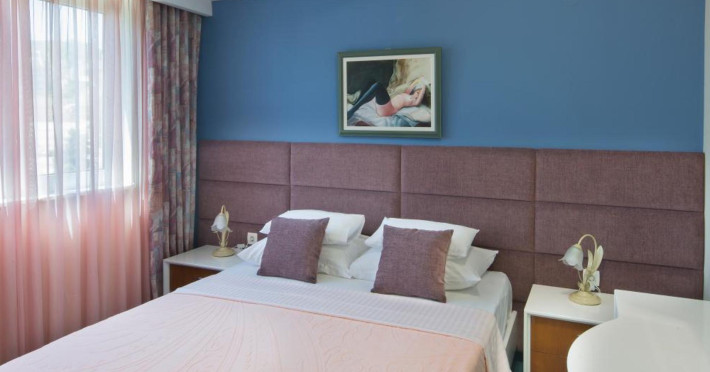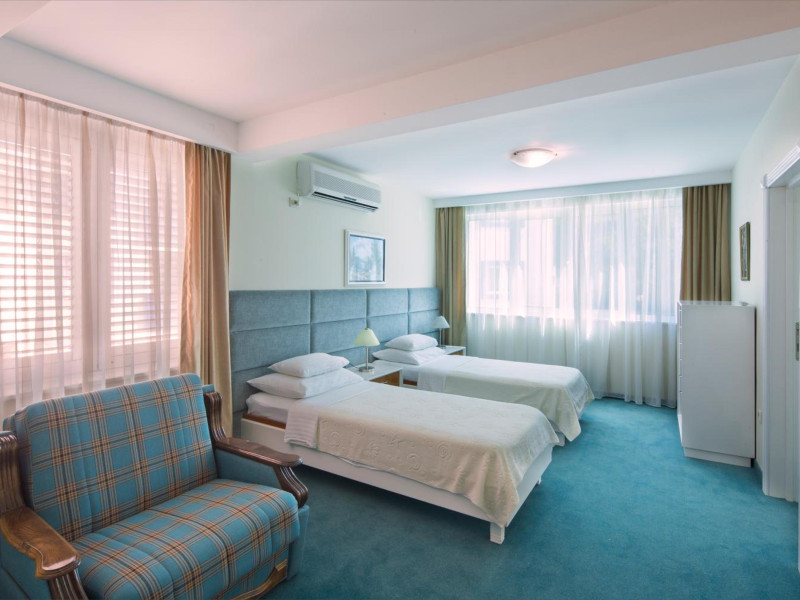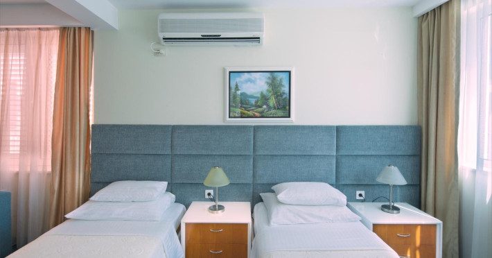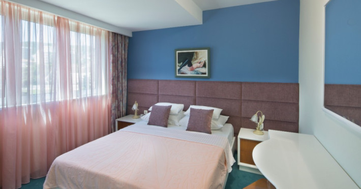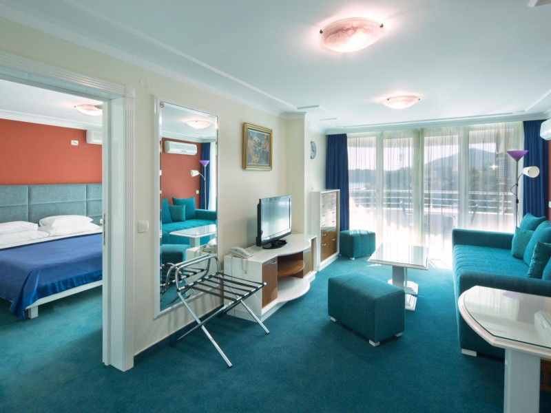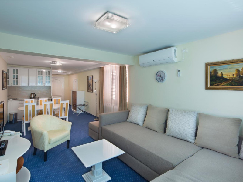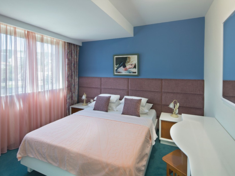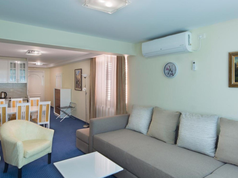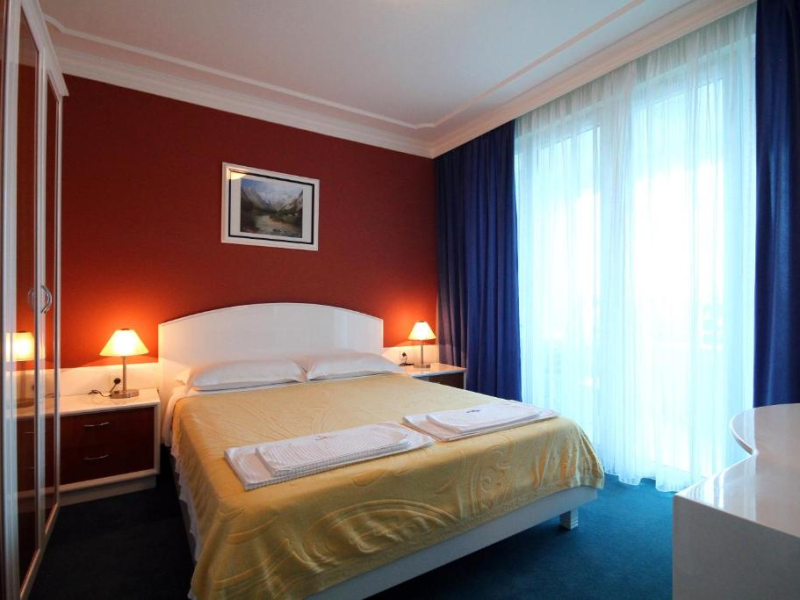 The 4-star Bella Vista is located 200 metres from Budva's beach on the Montenegrin coast and offers 35 air-conditioned rooms and apartments with LCD cable TV, free WiFi, a kitchenette, and a balcony. Guests can enjoy the sauna, hot tub, and gym. The restaurant serves national and international cuisine and features an open terrace. A café bar serving beverages and sweets is also available. The Hotel Bella Vista is a hotel.