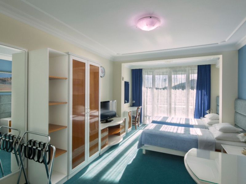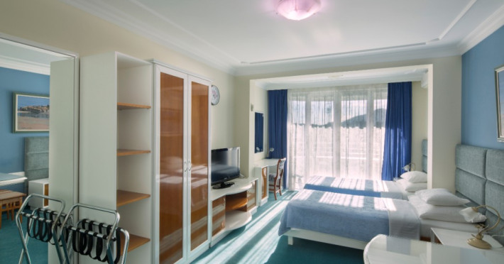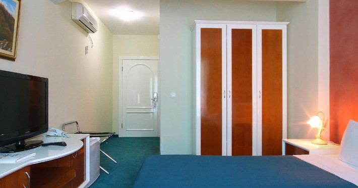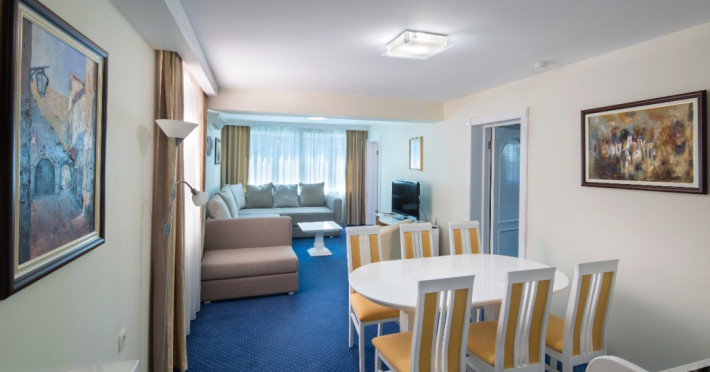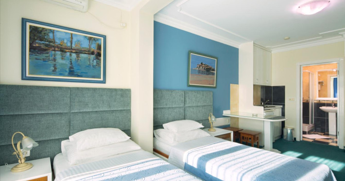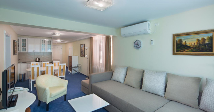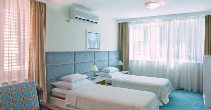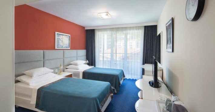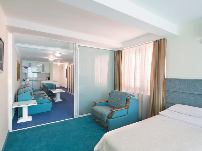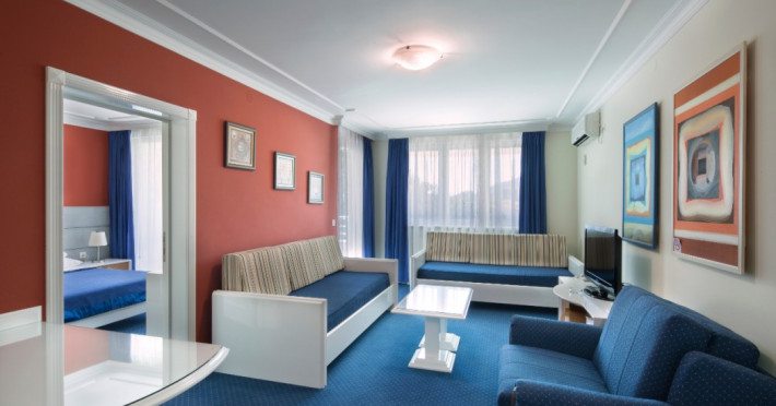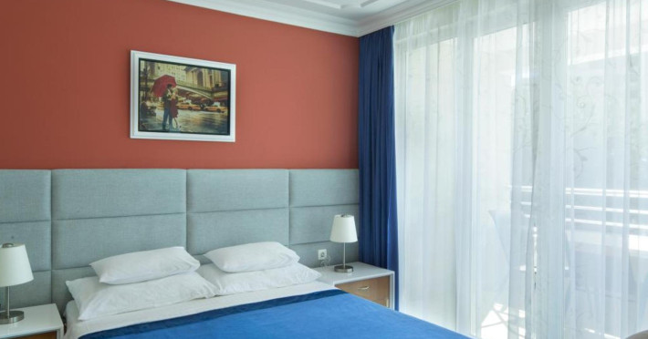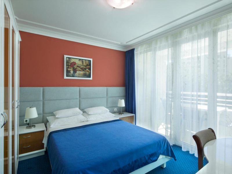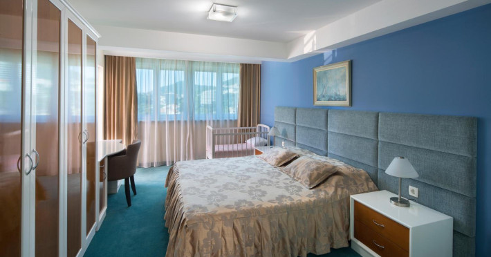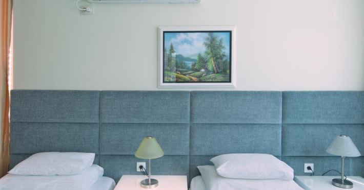 The 4-star Bella Vista is located 200 metres from Budva's beach on the Montenegrin coast and offers 35 air-conditioned rooms and apartments with LCD cable TV, free WiFi, a kitchenette, and a balcony. Guests can enjoy the sauna, hot tub, and gym. The restaurant serves national and international cuisine and features an open terrace. A café bar serving beverages and sweets is also available. The Hotel Bella Vista is a hotel.