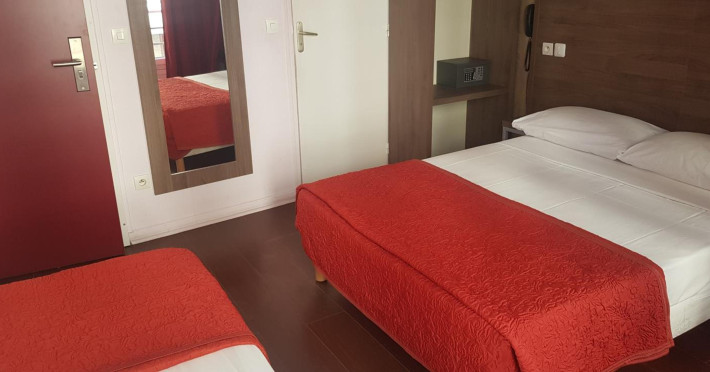 Hotel Bertha is located in the Montmartre district of Paris, a 10-minute walk from Le Moulin Rouge. It offers low-cost rooms with a shower and a TV. A continental breakfast is served each morning. The hotel provides a vending machine with drinks and a 24-hour front desk with free Wi-Fi access. Place de Clichy Metro Station is nearby, providing direct access to the Champs-Elysees and the Rodin Museum. The Sacre-Coeur Basilica is also located within proximity to the hotel. The Hotel Bertha is a hotel.