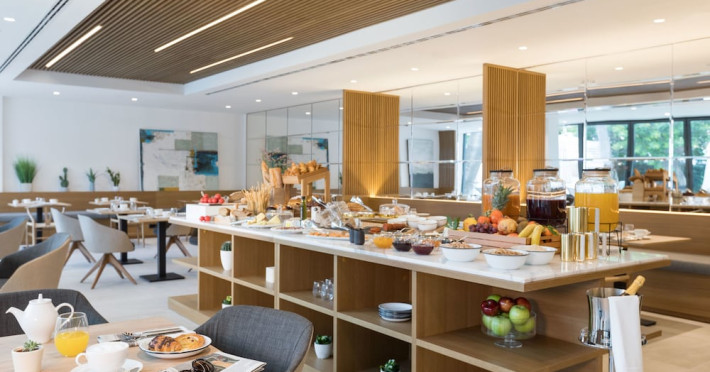 Guests can enjoy a restaurant with international and vegetarian dishes, a lobby bar, and a poolside bar. The hotel features a garden area with a swimming pool and a sun deck, and a spa (access for guests 17 and older) with a sauna and massages. Additional amenities include a 24-hour front desk, concierge services, dry cleaning/laundry services, and room service. Continental breakfast is available for a fee. Self-parking is available on-site (charges apply). The hotel has 66 air-conditioned guestrooms with Wi-Fi, TV, a laptop-compatible safe, and tea and coffee facilities. Bathrooms feature showers, complimentary toiletries, and bathrobes.