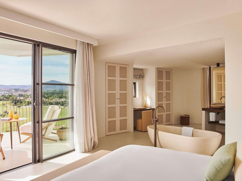 Located in Mijas, La Zambra Resort GL, in the Unbound Collection by Hyatt, offers a tranquil retreat near Mijas Golf Course. The hotel features 197 air-conditioned rooms, each with a terrace or balcony and views of the golf course or mountains. Rooms are equipped with a desk, coffee machine, minibar, safety deposit box, flat-screen TV, and a private bathroom with a shower. Dining options include restaurants serving Mediterranean, Pizza and Spanish cuisine, a bar/lounge, and a poolside bar, with 24-hour room service available. Vegetarian, dairy-free and vegan options are available. A complimentary buffet breakfast is served daily. Guests can enjoy multiple swimming pools, a spa with a range of treatments, a health club, tennis and paddle courts, a gym, and access to golf courses. Activities such as windsurfing and cycling are also available. The hotel provides a 24-hour front desk, concierge services, babysitting (surcharge), a business center, dry cleaning/laundry services, airport transfers, room service, free WiFi, and free valet parking. Meeting and conference facilities are available. Malaga Airport is 31 km away. The Hotel Byblos Andaluz is a hotel.
