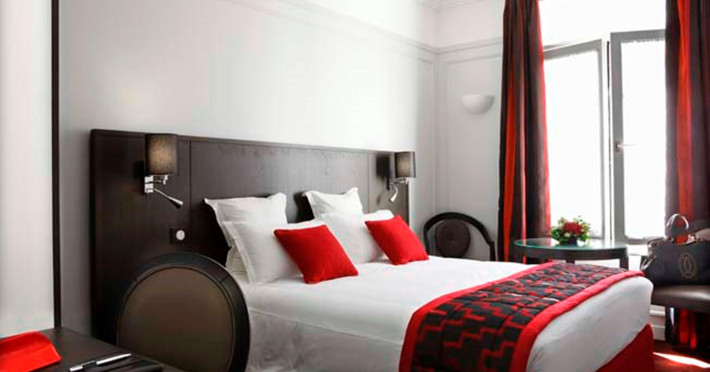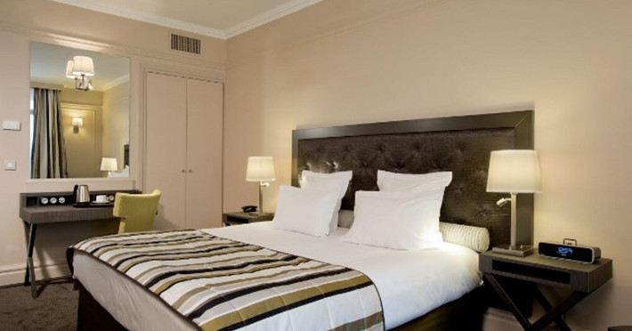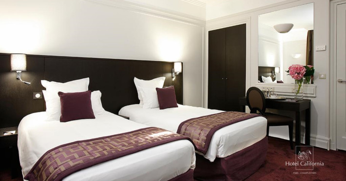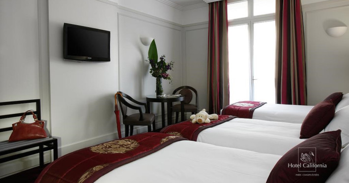 Located in the heart of Paris, Hotel California Champs Elysees is a traditional hotel with an attractive architectural design, situated 100 metres from the Champs Elysees and 200 metres from the nearest metro station, providing easy access to the city's attractions. The hotel offers a restaurant, bar, coffee shop, and a fitness center. Guests can enjoy complimentary internet access, concierge service, express check-in/check-out, luggage storage, safety deposit boxes, and tour assistance. Additional amenities include taxi service, dry cleaning, and laundry service. Room service and daily housekeeping are available. The hotel is non-smoking. Some rooms feature air conditioning, blackout curtains, a balcony or terrace, television, in-room video streaming, cable TV, a coffee or tea maker, a mini bar, a hair dryer, toiletries, and bathrobes. Breakfast is available, and the on-site eateries offer diverse cuisine, including halal options. Parking is available for guests with vehicles. The HOTEL CALIFORNIA CHAMPS ELYSEES is a Tourist hotel. The nightlife/restaurants are easily accessible by taxi or bus from the hotel.
