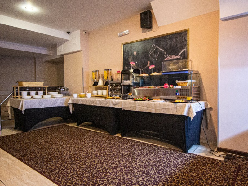 Micul dejun se serveste in salonul special amenajat.