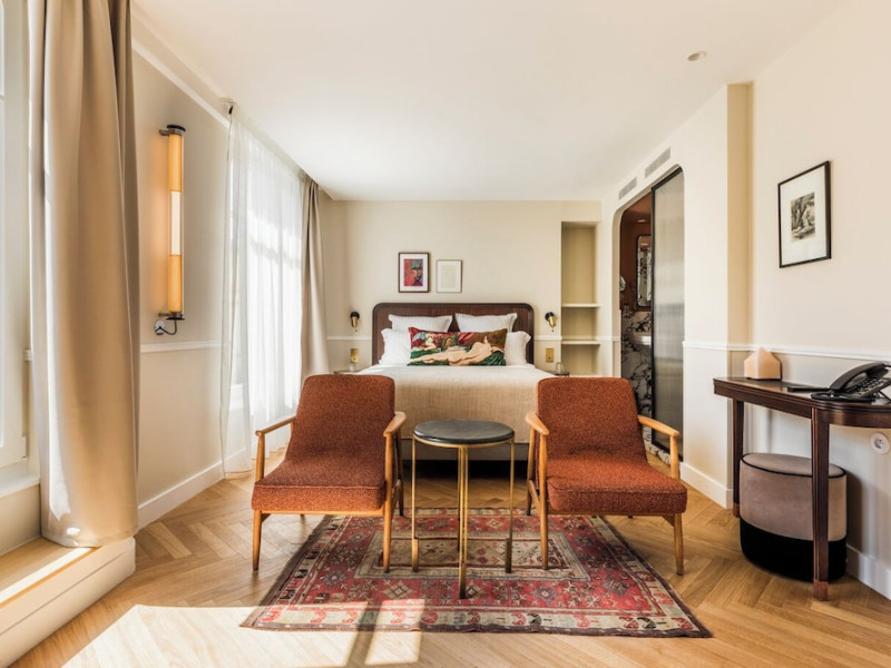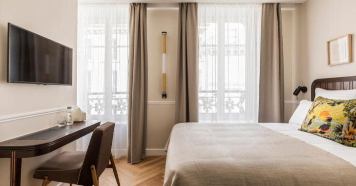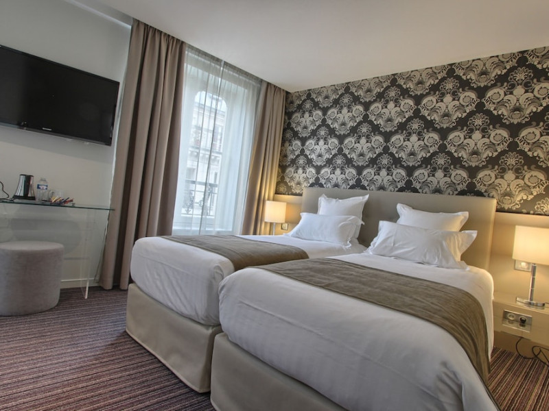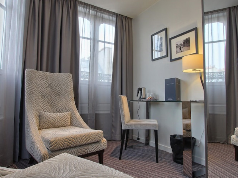 Located in Paris's 9th Arrondissement, Hôtel Chamar is within walking distance of Theatre la Bruyere, Theatre Mogador, La Machine du Moulin Rouge, and Galeries Lafayette. This hotel offers complimentary Wi-Fi, concierge services, a common area television, a snack bar/deli, and a bar/lounge. A buffet breakfast is served daily (for a fee) from 7 am to 11 am. Additional amenities include complimentary newspapers in the lobby, a 24-hour front desk, and multilingual staff. The 25 soundproofed guestrooms feature LED televisions with satellite programming, private bathrooms with rainfall showerheads and designer toiletries, phones, laptop-compatible safes, and desks. Some rooms also offer a Nespresso coffee machine and an iPod dock. Bathrobes and a hairdryer are provided. Room service and daily housekeeping are available. Saint-Georges Saint-Lazare Train Station and La Madeleine are nearby. The hotel is a non-smoking property. The nearest airports are Paris Orly (ORY), Paris Charles de Gaulle (CDG), and Paris Beauvais (BVA). The Hotel Chamar is a hotel.