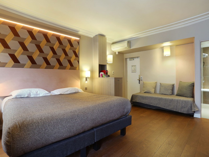 Located in the 8th Arrondissement of Paris, this 3-star hotel is housed in a 19th-century building near Place de la Madeleine. It offers 46 air-conditioned and soundproofed rooms with cable TV and private bathrooms. Complimentary wireless internet access is available. Guests can enjoy a drink at the bar/lounge. A continental breakfast is available daily for a fee. The hotel features a 24-hour front desk, a meeting room, and concierge services. Nearby attractions include Boulevard Haussmann, Rue du Faubourg Saint-Honore, and Printemps Department Store. Metro stations are within walking distance, providing easy access to other areas of Paris. The Hotel Concortel is a hotel. Located in Paris area.