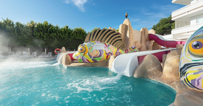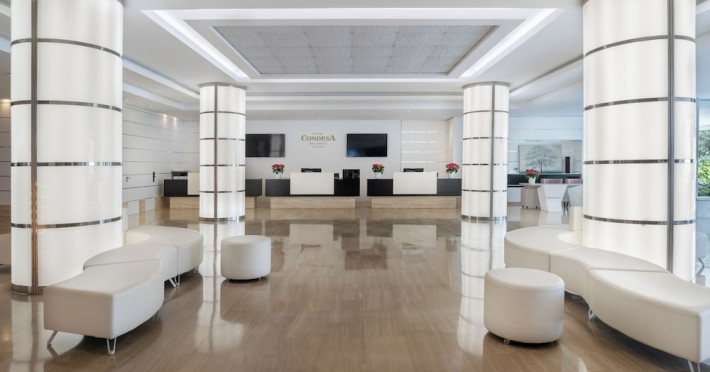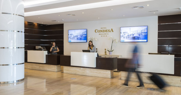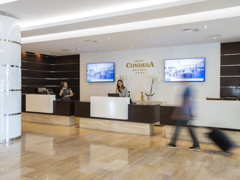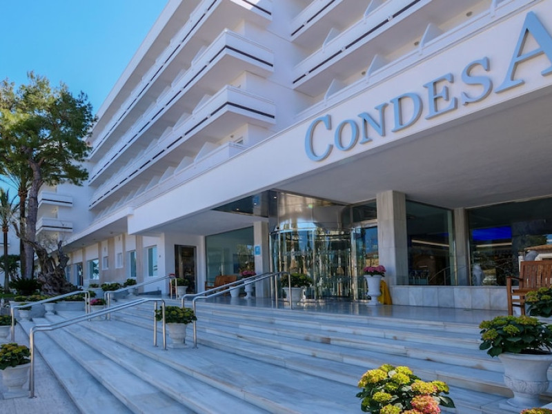 Located on Alcúdia Beach in northern Mallorca, the Hotel Condesa offers a relaxing stay with direct beach access. Guests can enjoy Mediterranean cuisine at one of the hotel's restaurants and relax with drinks at the bar/lounge, poolside bar, or swim-up bars. The hotel features multiple swimming pools, a solarium with panoramic views, and a fitness center. For an additional fee, guests can enjoy a buffet breakfast. The hotel provides complimentary wireless internet access, concierge services, and a 24-hour front desk. Air-conditioned rooms feature a balcony, TV, desk, minibar, and safe. Airport shuttle service and free self-parking are available. The Hotel Condesa is a Tourist hotel. The nightlife/restaurants are located in the hotel.