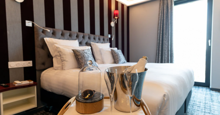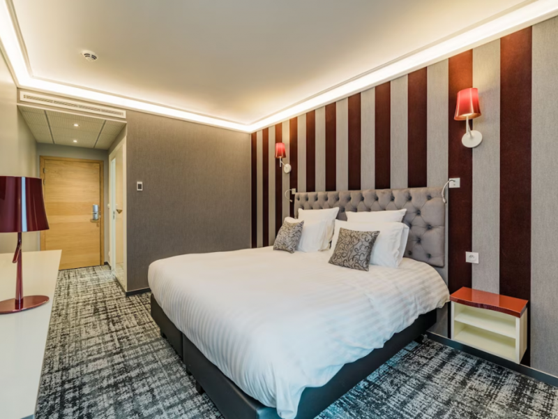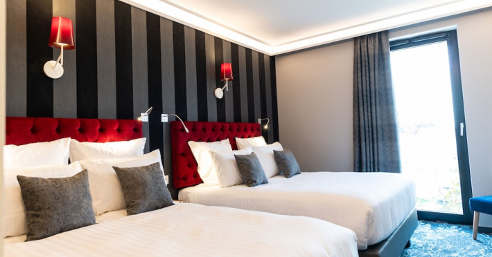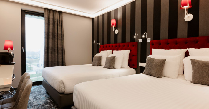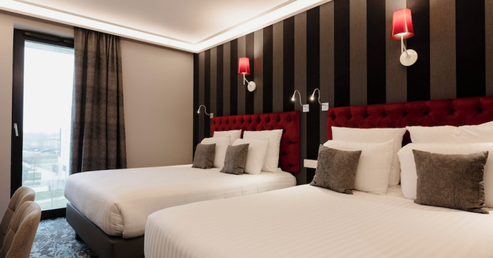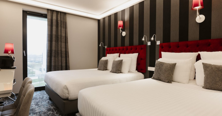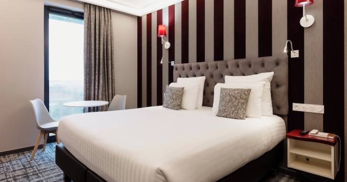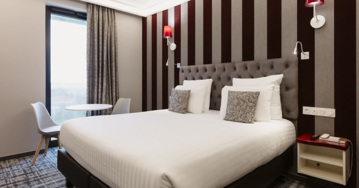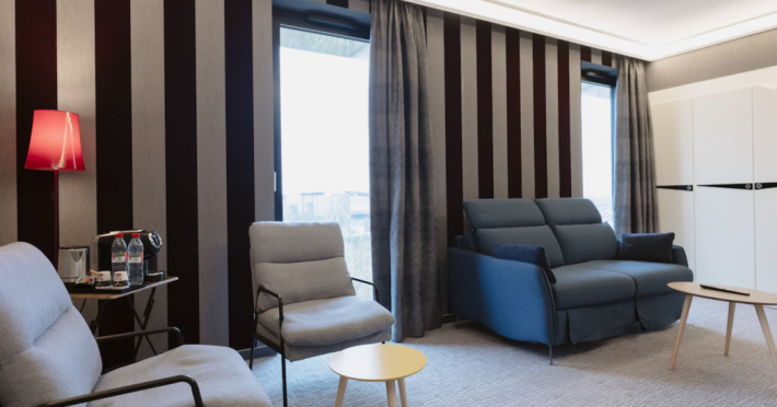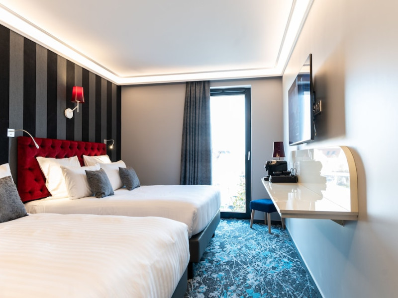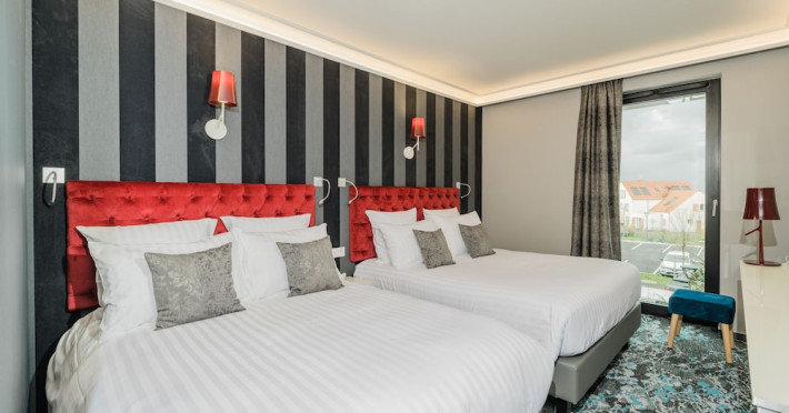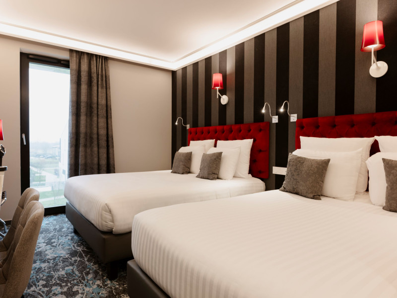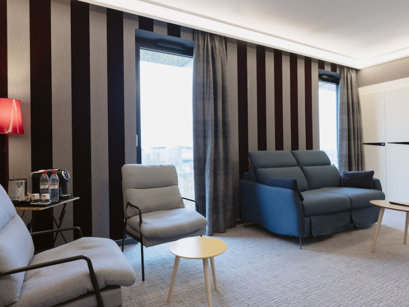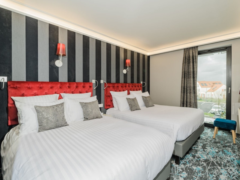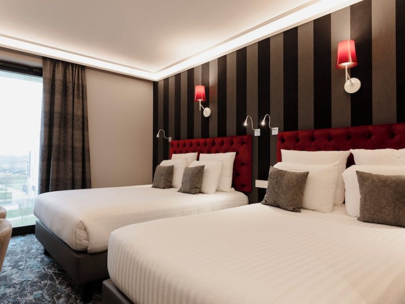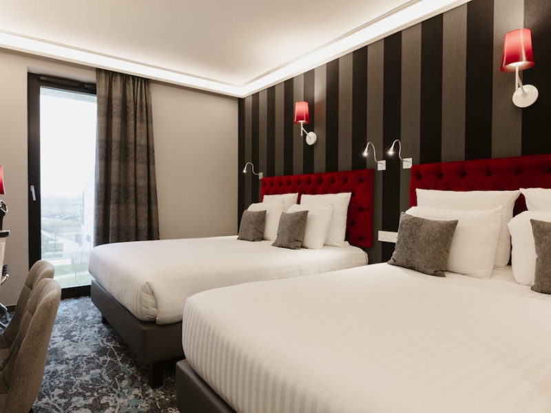 Hotel Dali Val D'Europe Tapestry Collection by Hilton is a 4-star hotel in Chanteloup-en-Brie, near Val d'Europe and Disneyland Paris (approximately a 10-minute taxi ride). The hotel offers 93 individually decorated guestrooms with espresso makers, LED televisions, Select Comfort beds with premium bedding, and bathrooms featuring showers with rainfall showerheads and designer toiletries. Amenities include free Wi-Fi, a 24-hour front desk, a 40m² meeting room, free self-parking, a seasonal outdoor pool (closed May 15-June 30 and May 27-29, 2025), a fitness center (closed seasonally, May 15-June 30), a restaurant (BEEF&CLUB, a gastronomic steak house), a poolside bar, and two bars/lounges. A jazz club is open Fridays and Saturdays (September-April). Buffet breakfast is available daily (fee applies). The hotel also offers concierge services, a computer station, complimentary newspapers, and dry cleaning/laundry services. Wheelchair access is available in communal areas. Distances to nearby attractions include Val d'Europe, Val d'Europe Shopping Center, Aquatonic Paris Val d'Europe, La Vallée Village, SEA LIFE Val d'Europe, Disneyland Paris, and several golf courses. The nearest airports are Paris Charles de Gaulle (CDG) and Paris Orly (ORY). Note that some services may incur a fee. The Hotel Dali Val D'Europe Tapestry Collection by Hilton is a hotel.
