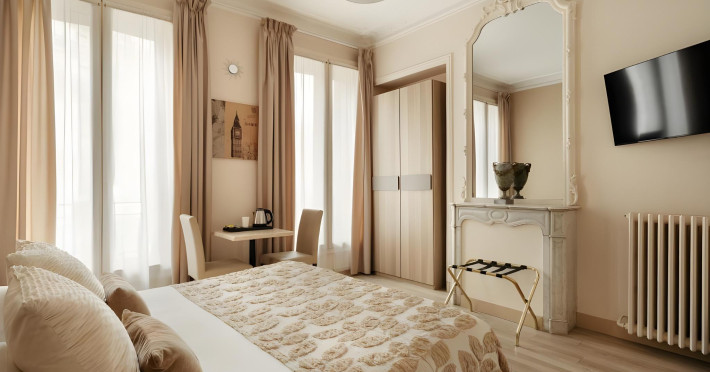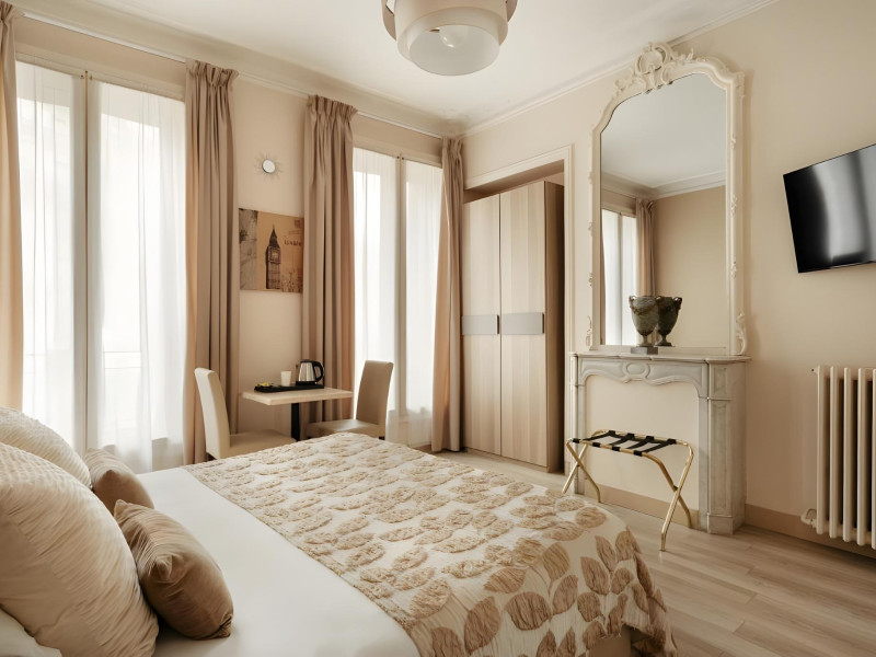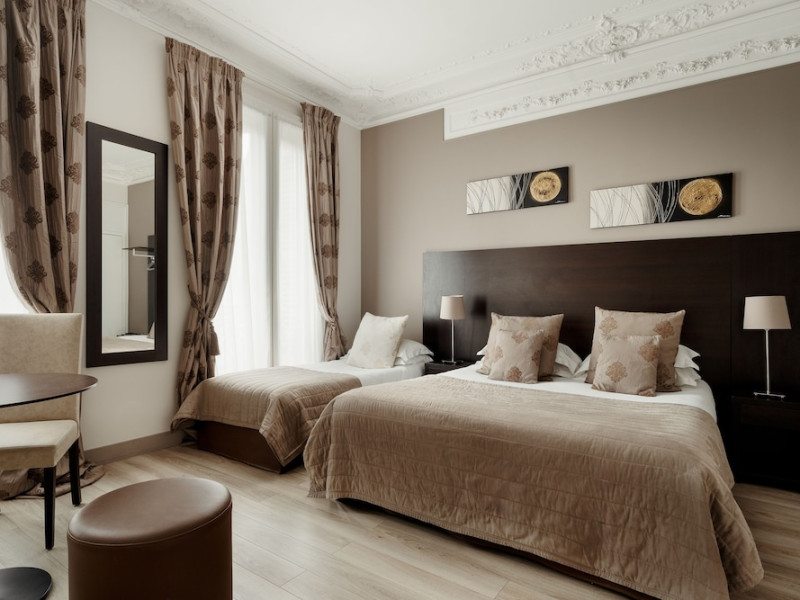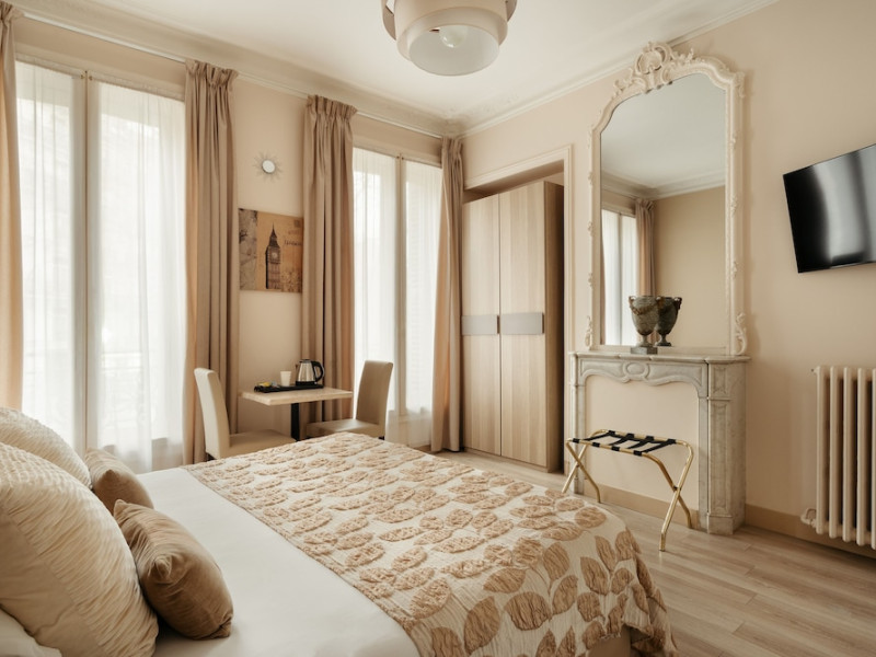 Centrally located in Paris, Hôtel D'Argenson offers 29 guestrooms featuring complimentary wireless internet access, satellite programming, flat-screen televisions, phones, desks, and safes. Private bathrooms include showers with rainfall showerheads and hair dryers. Cooked-to-order breakfasts are available daily from 7:30 AM to 10:00 AM for a fee. The hotel provides a 24-hour front desk, luggage storage, tour/ticket assistance, and a safe deposit box at the front desk. The hotel is a smoke-free property and offers designated smoking areas. The property will be undergoing renovations from June 23, 2025, to July 6, 2025, affecting select guestrooms, with efforts to minimize noise and disturbance. The HOTEL D'ARGENSON is a hotel.