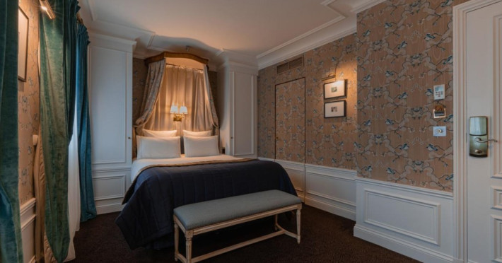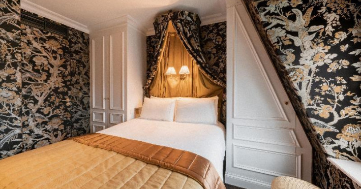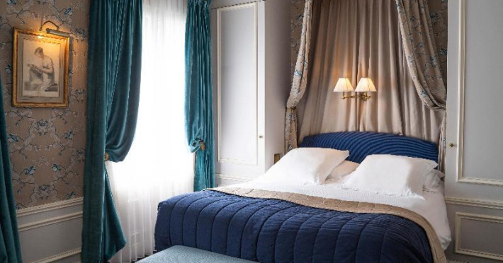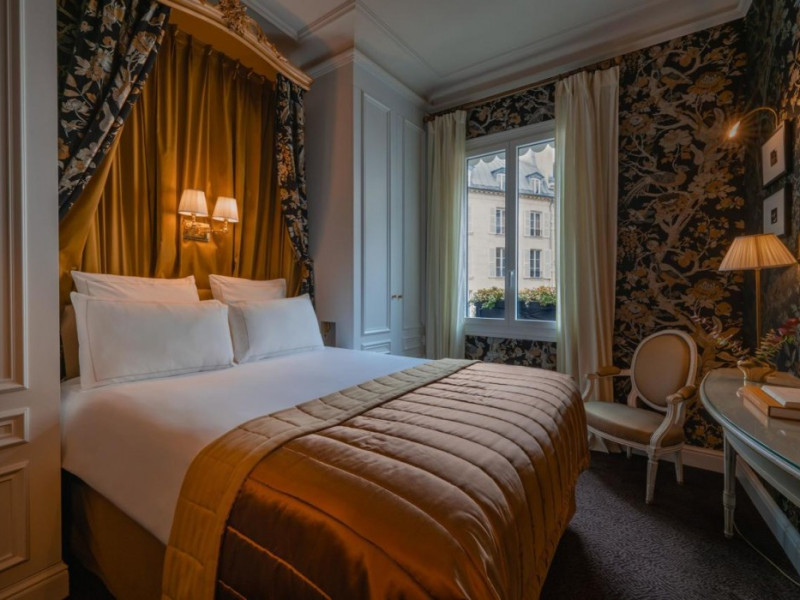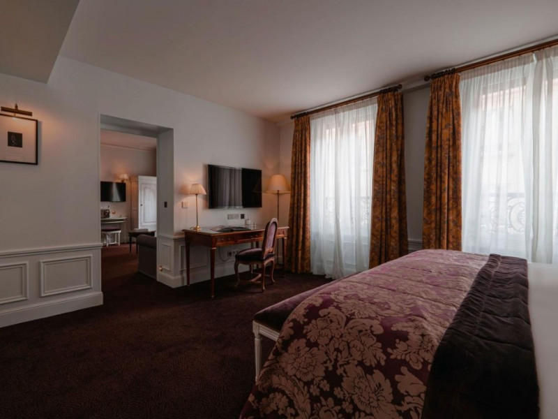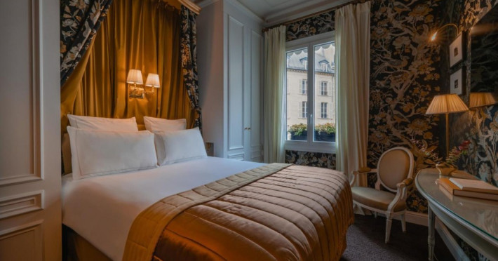 Located in the Saint Germain area of Paris, in the heart of the Latin Quarter, Hôtel de Buci is a classical-style hotel inspired by the 18th century. It features 24 individually decorated, soundproofed rooms with antique wooden furniture, cable TV, a minibar, complimentary Wi-Fi, a phone, a laptop-compatible safe, and a desk. Bathrooms include complimentary toiletries and a hair dryer. Some rooms offer air conditioning and coffee/tea makers. Guests can enjoy a buffet breakfast in the refined dining room (for a fee), relax in the coffee shop/cafe, or have a drink at the bar/lounge. Room service is available during limited hours. The hotel offers an indoor pool, sauna, concierge services, babysitting (surcharge), limo/town car service, dry cleaning/laundry services, a 24-hour front desk, luggage storage, a salon, and airport transportation (surcharge). The Louvre Museum and Luxembourg Gardens are within walking distance. The Hotel De Buci is a Tourist hotel. The nightlife/restaurants are easily accessible by taxi or bus from the hotel.