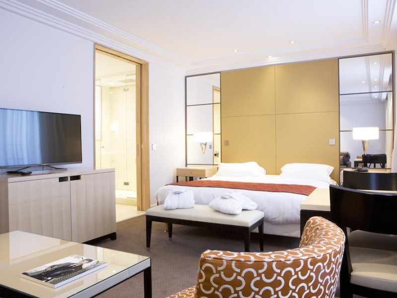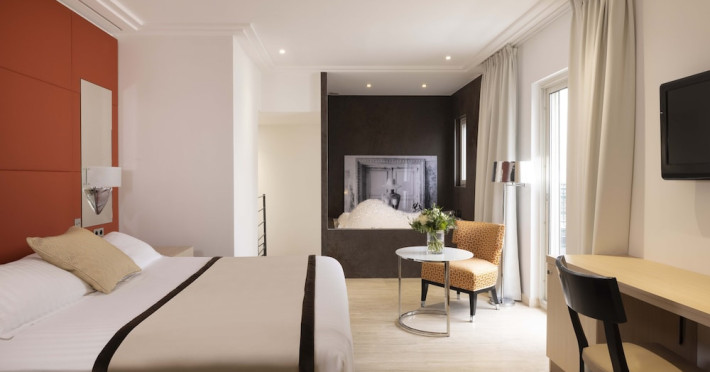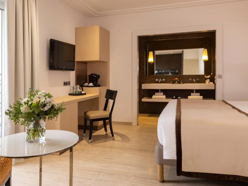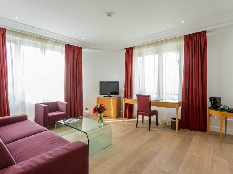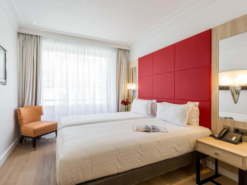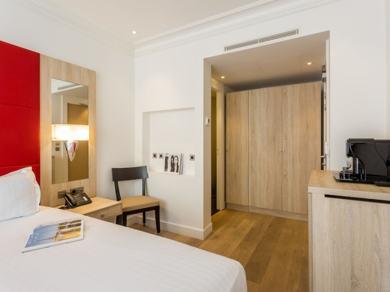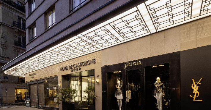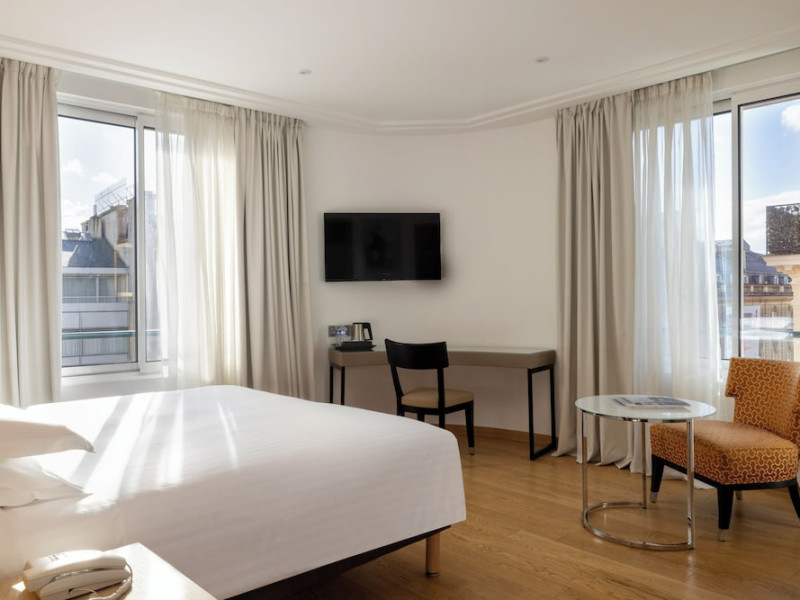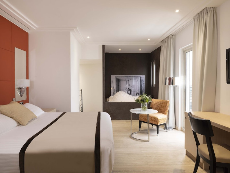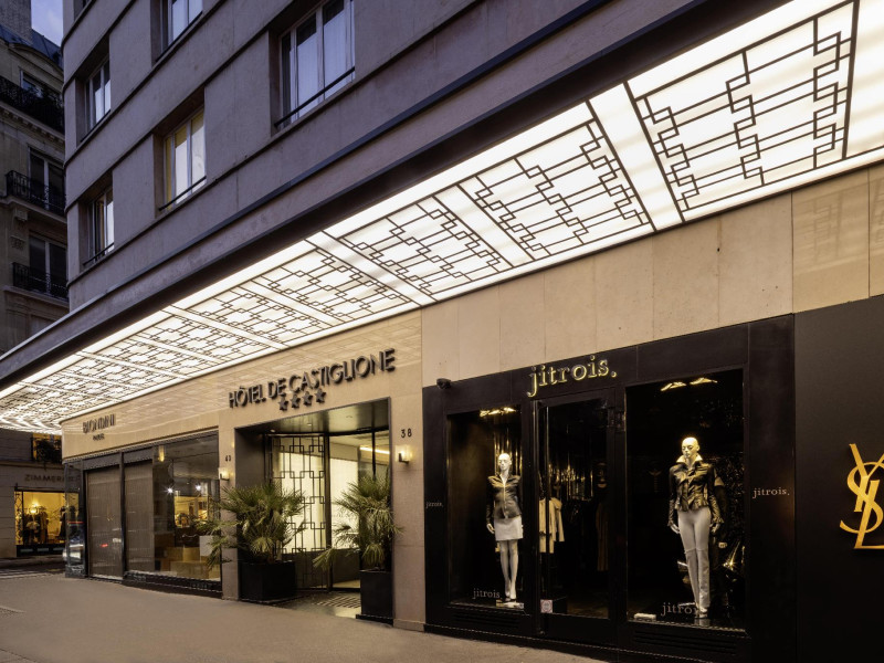 Hotel de Castiglione is a 4-star hotel located on Rue du Faubourg Saint-Honoré, a quiet and secure street in Paris' 8th arrondissement, near luxury boutiques and ambassadorial residences. It's 250 meters from Place de la Madeleine, 300 meters from Place de la Concorde, and close to the Champs-Élysées. The hotel offers 98 renovated, contemporary-style rooms with air conditioning, minibars, and espresso makers. Amenities include complimentary Wi-Fi, a 24/7 reception desk, concierge services, a business center, complimentary newspapers in the lobby, dry cleaning/laundry services, and babysitting (surcharge). A buffet breakfast is available daily (fee applies). The Concorde and Madeleine metro stations are a 5-minute walk away, and Gare Saint Lazare is a 12-minute walk. Paris Orly and Charles de Gaulle airports are 22.8 km and 33.6 km away, respectively. Rooms feature flat-screen TVs, private bathrooms with bathtubs or showers, complimentary toiletries, hair dryers, phones, safes, and desks. Some rooms may have balconies or terraces and separate living rooms. Select rooms offer coffee/tea makers and bottled water. The Hotel De Castiglione is a Tourist hotel. The nightlife/restaurants are easily accessible by taxi or bus from the hotel.