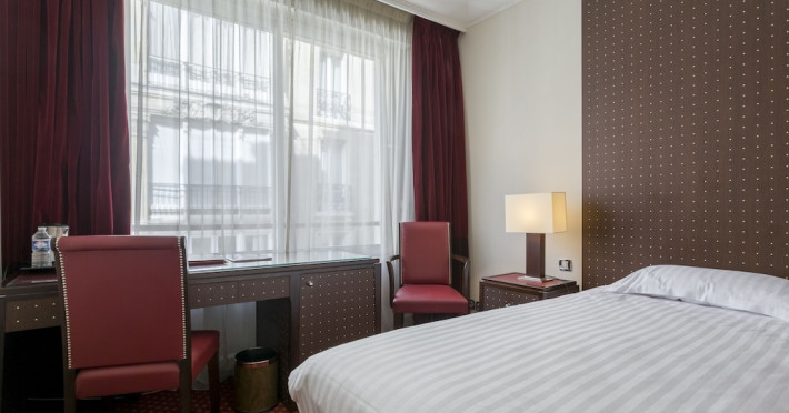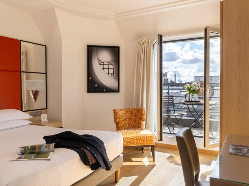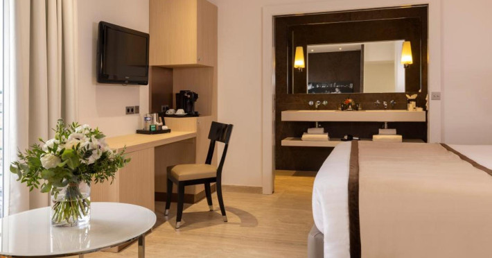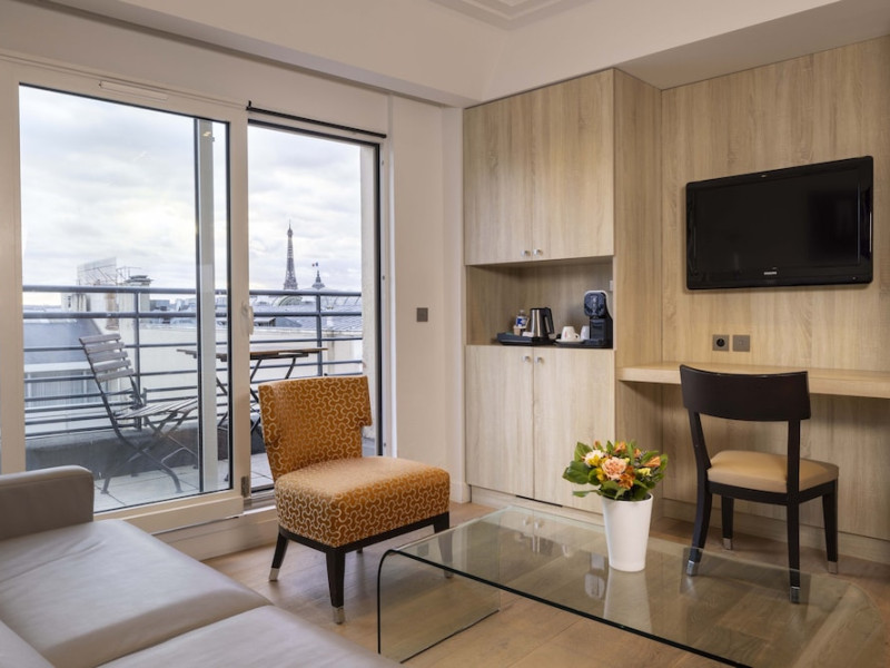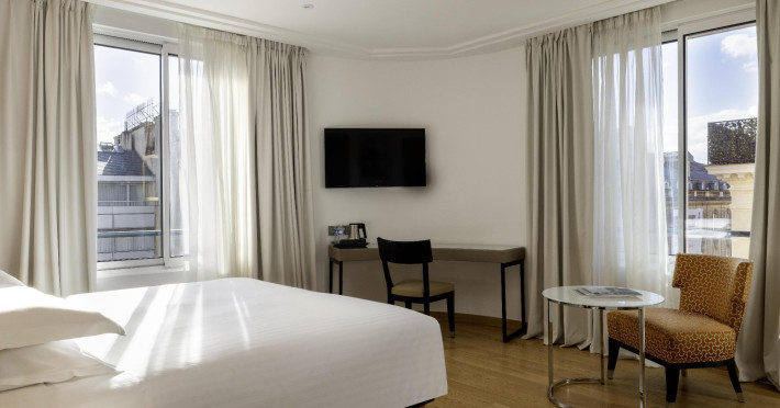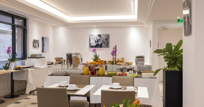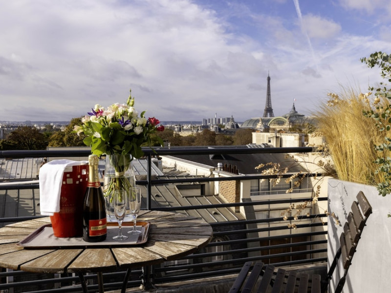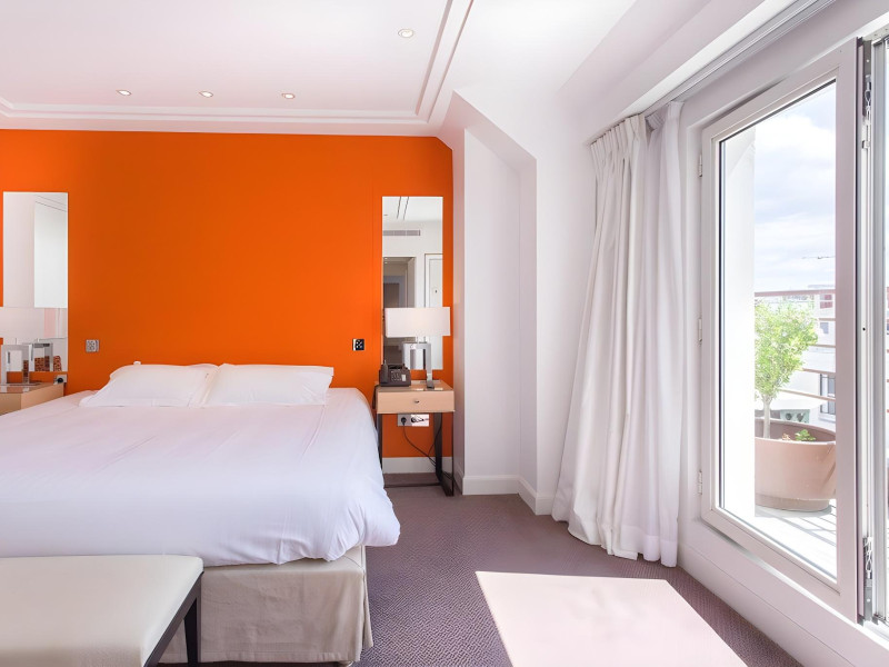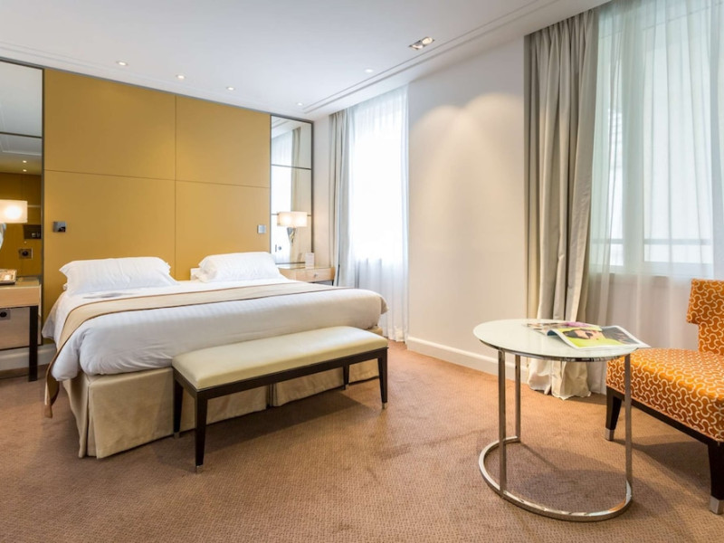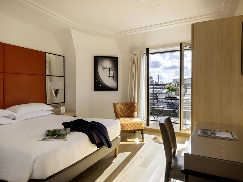 Hotel de Castiglione is a 4-star hotel located on Rue du Faubourg Saint-Honoré, a quiet and secure street in Paris' 8th arrondissement, near luxury boutiques and ambassadorial residences. It's 250 meters from Place de la Madeleine, 300 meters from Place de la Concorde, and close to the Champs-Élysées. The hotel offers 98 renovated, contemporary-style rooms with air conditioning, minibars, and espresso makers. Amenities include complimentary Wi-Fi, a 24/7 reception desk, concierge services, a business center, complimentary newspapers in the lobby, dry cleaning/laundry services, and babysitting (surcharge). A buffet breakfast is available daily (fee applies). The Concorde and Madeleine metro stations are a 5-minute walk away, and Gare Saint Lazare is a 12-minute walk. Paris Orly and Charles de Gaulle airports are 22.8 km and 33.6 km away, respectively. Rooms feature flat-screen TVs, private bathrooms with bathtubs or showers, complimentary toiletries, hair dryers, phones, safes, and desks. Some rooms may have balconies or terraces and separate living rooms. Select rooms offer coffee/tea makers and bottled water. The Hotel De Castiglione is a Tourist hotel. The nightlife/restaurants are easily accessible by taxi or bus from the hotel.