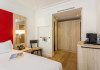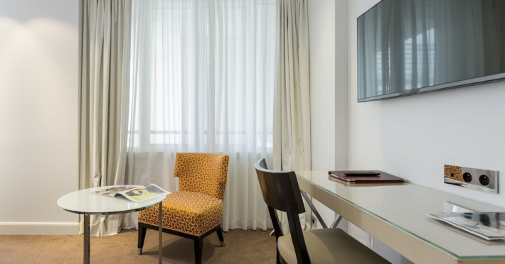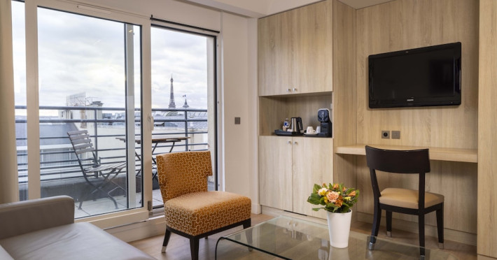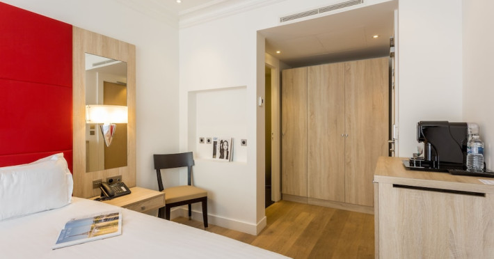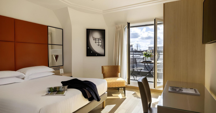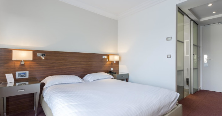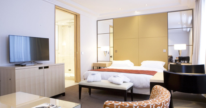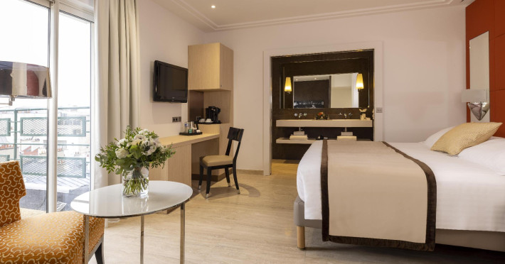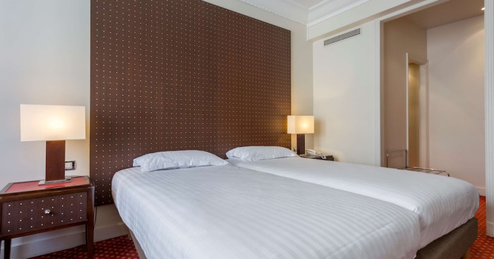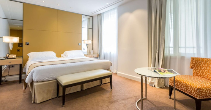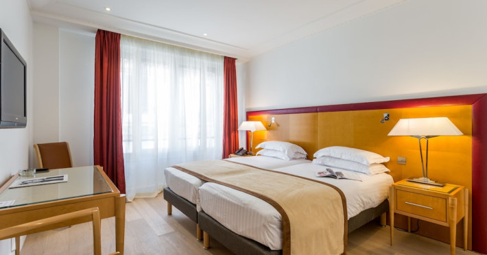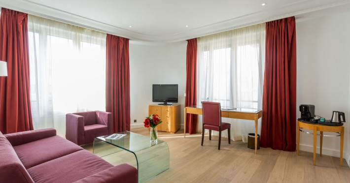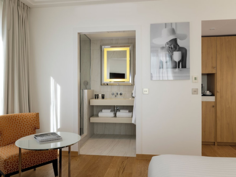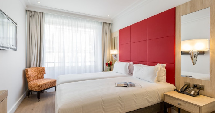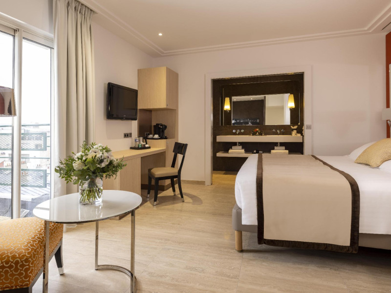 Hotel de Castiglione is a 4-star hotel located on Rue du Faubourg Saint-Honoré, a quiet and secure street in Paris' 8th arrondissement, near luxury boutiques and ambassadorial residences. It's 250 meters from Place de la Madeleine, 300 meters from Place de la Concorde, and close to the Champs-Élysées. The hotel offers 98 renovated, contemporary-style rooms with air conditioning, minibars, and espresso makers. Amenities include complimentary Wi-Fi, a 24/7 reception desk, concierge services, a business center, complimentary newspapers in the lobby, dry cleaning/laundry services, and babysitting (surcharge). A buffet breakfast is available daily (fee applies). The Concorde and Madeleine metro stations are a 5-minute walk away, and Gare Saint Lazare is a 12-minute walk. Paris Orly and Charles de Gaulle airports are 22.8 km and 33.6 km away, respectively. Rooms feature flat-screen TVs, private bathrooms with bathtubs or showers, complimentary toiletries, hair dryers, phones, safes, and desks. Some rooms may have balconies or terraces and separate living rooms. Select rooms offer coffee/tea makers and bottled water. The Hotel De Castiglione is a Tourist hotel. The nightlife/restaurants are easily accessible by taxi or bus from the hotel.