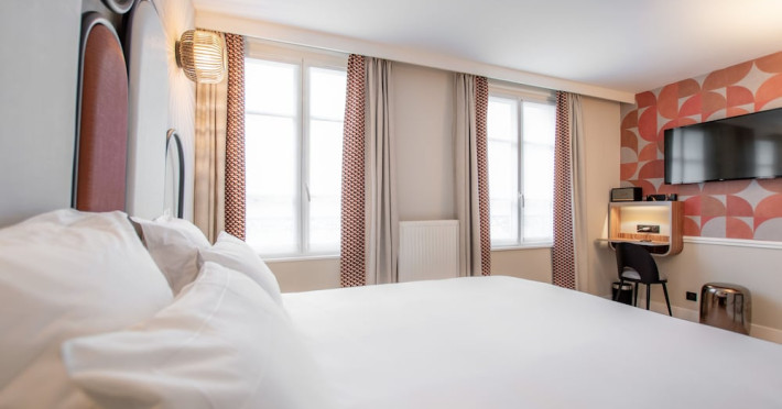 Hôtel de l'Espérance places you in the heart of Paris, within a 15-minute walk of Place d'Italie and Panthéon. This hotel offers a terrace, complimentary wireless internet access, and concierge services. Buffet breakfasts are available daily for a fee from 7:30 AM to 10:30 AM. Featured amenities include complimentary newspapers in the lobby, a 24-hour front desk, and luggage storage. The 38 guestrooms feature espresso makers, flat-screen televisions with cable programming, phones, safes, and desks. Private bathrooms have complimentary toiletries and hair dryers. It is 0.8 mi (1.3 km) from Luxembourg Gardens and 1.4 mi (2.3 km) from Notre-Dame. Nearby attractions include Rue Mouffetard (0.2 mi), Jardin des Plantes (0.4 mi), Place d'Italie (0.6 mi), and Panthéon (0.7 mi). The nearest airports are Paris Orly Airport (ORY) - 8.5 mi, Paris Charles de Gaulle Airport (CDG) - 22.6 mi, and Paris Beauvais Airport (BVA) - 66.7 mi. The Hotel de L’Esperance is a hotel.