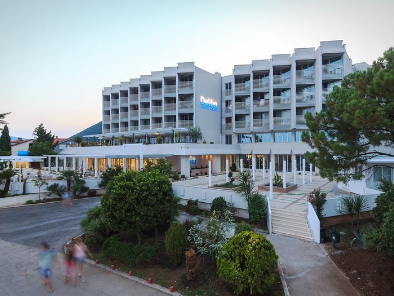 Localizare La 2.5 km de centru statiunii Herceg-Novi, si peste drum de plaja. Statie de autobuz la 50m de hotel. Facilitati hotel Format din cladire principala si mai multe cladiri secundare, dispune de restaurant cu terasa in cladirea principala, restaurant in cladirea secundara, bar cu terasa, cafenea, bar pe plaja, lobby, coafor, magazin de suveniruri, internet, lift, parcare; inclus - piscina exterioara, sala fitness; contra cost - sauna, masaj, sezlonguri si umbrele pe plaja. Dotari camere Baie, uscator de par, halat de baie, telefon, TV satelit, internet, minibar, seif, aer conditionat, balcon. Pagina web http://hoteldelfin.me/