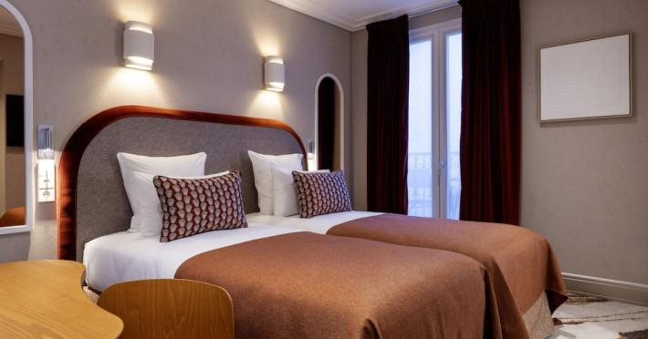 Hôtel des Carmes by Malone, located in the Latin Quarter of Paris, offers a calm retreat near the Panthéon and Île Saint-Louis. It is within walking distance of Sorbonne University, Notre-Dame, and Luxembourg Gardens. The hotel features 29 guestrooms with complimentary wireless internet, flat-screen televisions with satellite programming, free minibar items, safes, and desks. Private bathrooms include complimentary toiletries and hair dryers.