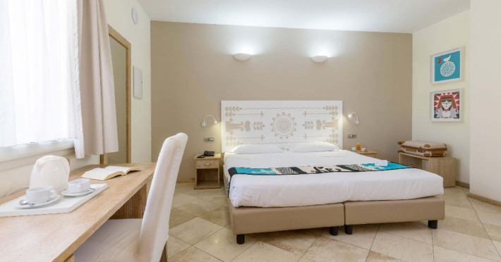 Arta, eleganta si calm: bun venit in refugiu dumneavoastra de liniste din centrul orasului Alghero, Hotel Domomea. Situat pe o strada linistita, dar la doar cativa pasi de centrul istoric, port si faleza, hotelul nostru va ofera un loc pasnic de relaxare, departe de agitatia verii din Alghero. Aceasta serenitate se reflecta in inima hotelului, unde salonul convivial si gradina interioara primitoare devin locuri ideale pentru a va deconecta dupa o zi petrecuta la plaja sau explorand numeroasele sate fascinante. Dimineata, puteti lua un mic dejun tihnit in gradina, transformand acest moment intr-un mic ritual de vacanta. Cu cele 21 de camere ale sale, puse in valoare de talentul artistic al Marei Damiani, Hotel Domomea ofera o atmosfera intima si primitoare, unde personalul nostru atent si profesionist este mereu la dispozitie pentru a va ajuta cu cererile dumneavoastra si pentru a va sugera locuri de vizitat. Din locatia noastra puteti merge usor pe jos catre centrul istoric pentru a vizita magazinele tipice, muzeele, restaurantele si buticurile din Alghero. Hotel Domomea este, de asemenea, un punct de plecare excelent de unde puteti alege sa mergeti la o plaja diferita in fiecare zi, pe jos, cu bicicleta sau cu masina. Plaje lungi cu nisip alb, care iti taie rasuflarea, si golfuri salbatice sunt usor accesibile. Dupa o zi de plaja, excursii cu barca sau plimbari pe zidurile vechiului oras, va puteti intoarce sa va relaxati in piscina noastra de pe acoperis, sa savurati o bautura in gradina sau pur si simplu sa va odihniti in linistea camerei dumneavoastra, conceputa pentru a va oferi confort maxim. Hotel Domomea este mai mult decat un loc de cazare: este o oaza de pace unde va puteti bucura de Alghero in propriul ritm, intr-un mediu calm si primitor. Suntem mereu disponibili pentru a va ajuta sa faceti vacanta dumneavoastra de neuitat.