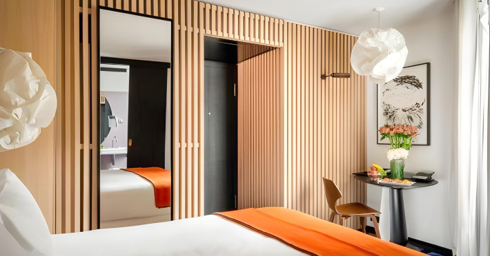 Located on a quiet street in the 8th arrondissement of Paris, close to the fashion and business center, Hotel du Ministere features a contemporary décor and an art collection. Nearby attractions include the Champs-Élysées, Place de la Concorde, Place de la Madeleine, and Rue du Faubourg Saint-Honoré. The hotel offers complimentary wired and wireless internet access, concierge services, and a 24-hour business center. Guests can enjoy a fitness center, a bar/lounge, and room service during limited hours. For business travelers, a meeting room is available. The hotel features individually furnished guestrooms with iPod docking stations, minibars, flat-screen televisions with satellite programming, and bathrooms with rainfall showerheads and designer toiletries. Conveniences include phones, laptop-compatible safes, and desks. Additional amenities include dry cleaning/laundry services, luggage storage, and newspapers in the lobby. Buffet breakfasts are available daily for a fee. Parking is available nearby for an extra cost. The hotel is eco-certified and non-smoking. The Hotel du Ministere is a hotel.