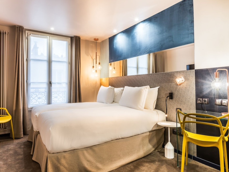 Centrally located in Paris, Hotel Duette Paris offers 29 guestrooms featuring flat-screen televisions, satellite programming, complimentary wireless internet access, private bathrooms with showers, complimentary toiletries, hair dryers, phones, laptop-compatible safes, and desks. Guests can enjoy a buffet breakfast daily from 7 AM to 10 AM for a fee. The hotel features a terrace, garden, concierge services, a banquet hall, express check-out, complimentary newspapers in the lobby, and a 24-hour front desk. Additional amenities include air conditioning and an outdoor patio. The hotel is located on Rue de Lévis, near Villiers Metro Station. The preferred airport is Paris Charles de Gaulle Airport (CDG). This hotel has received its official star rating from the French Tourism Development Agency, ATOUT France. The HOTEL DUETTE PARIS(FORMERLY MONCEAU ETOILE) is a Tourist hotel. The nightlife/restaurants are easily accessible by taxi or bus from the hotel.