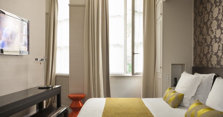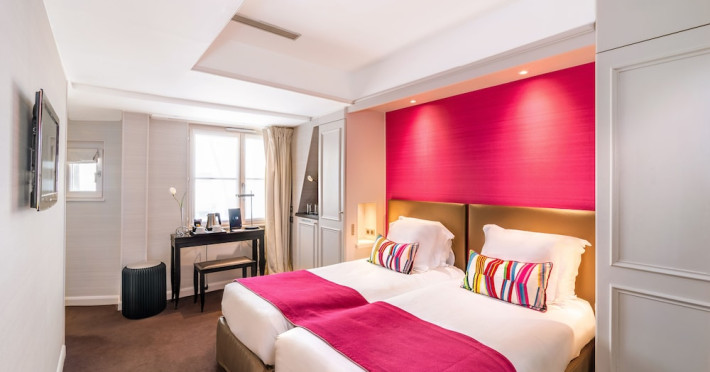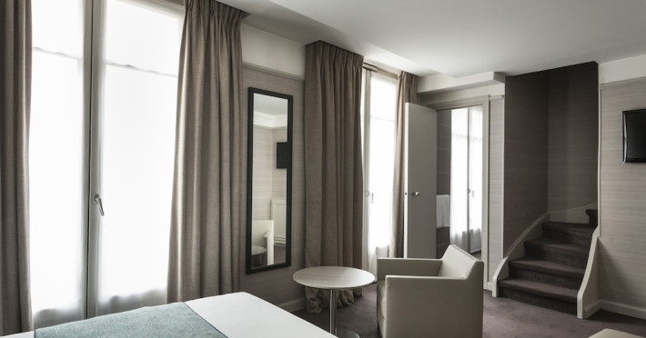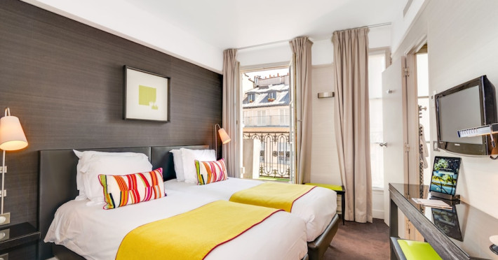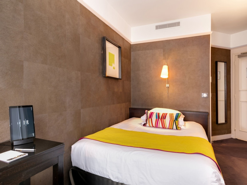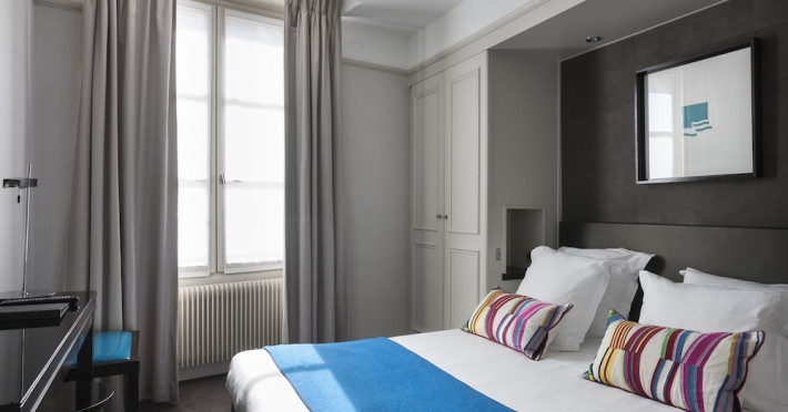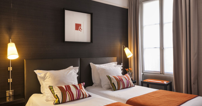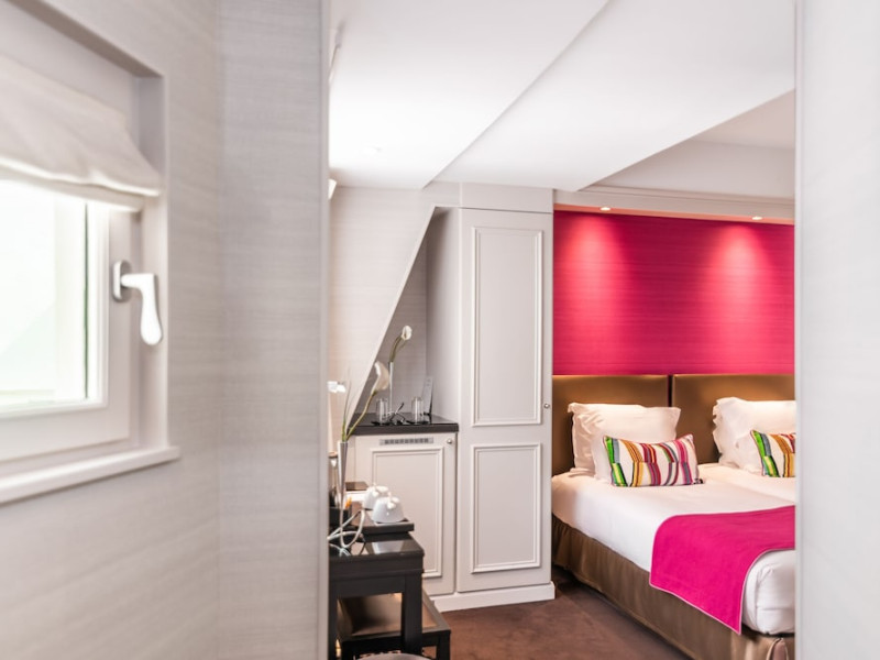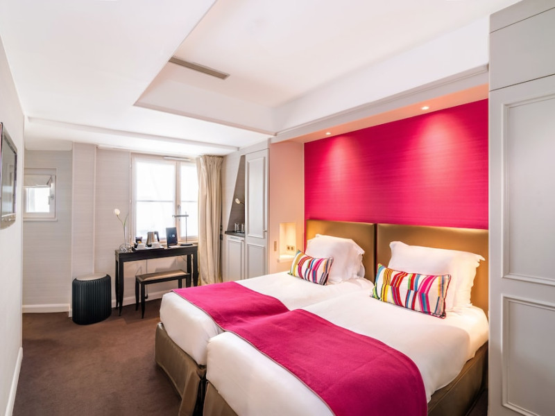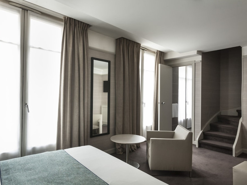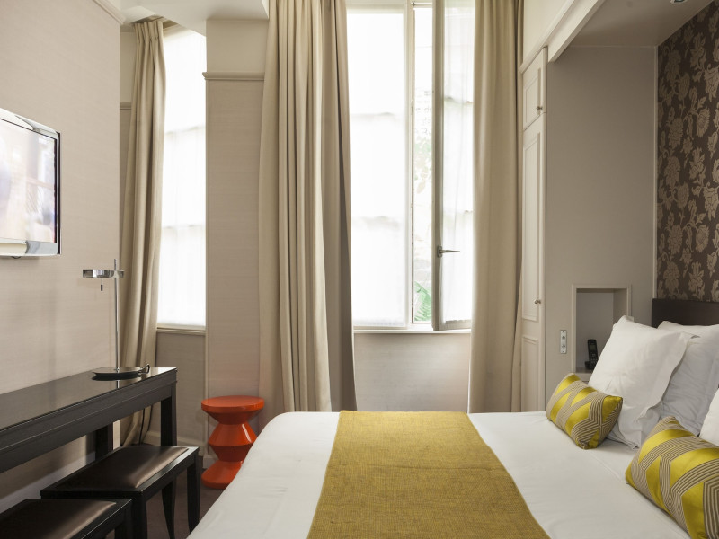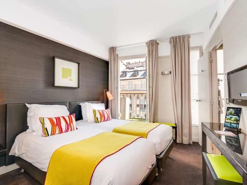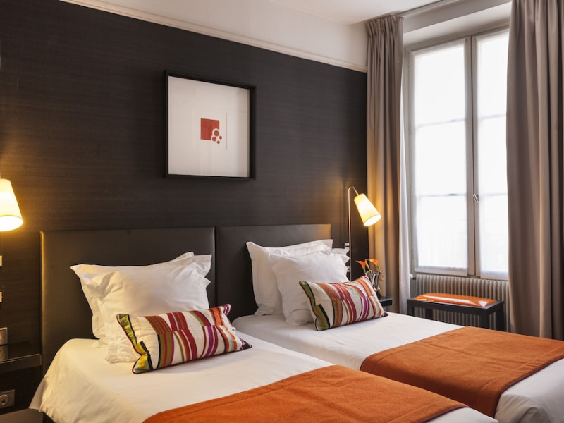 Located in the lively Marais district in central Paris, Hotel Duo is a design hotel offering air-conditioned guest rooms with free Wi-Fi. Each room features a flat-screen TV, minibar, telephone, and a private bathroom with a hairdryer and designer toiletries. Complimentary wired internet access is also available. Guests can enjoy a continental breakfast (surcharge) and take advantage of amenities including a sauna, fitness room, complimentary newspapers in the lobby, concierge services, dry cleaning/laundry services, and 24-hour room service. Hotel de Ville Metro Station is nearby, providing direct access to the Champs Elysées. The hotel is centrally located near attractions such as Centre Pompidou and Notre Dame. The hotel is a smoke-free property and offers luggage storage and safety deposit boxes. The Hotel Duo is a hotel.
