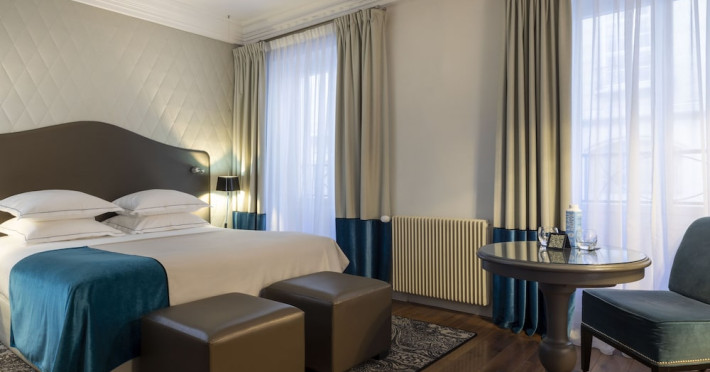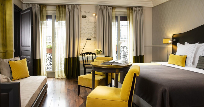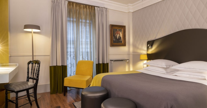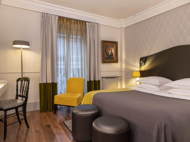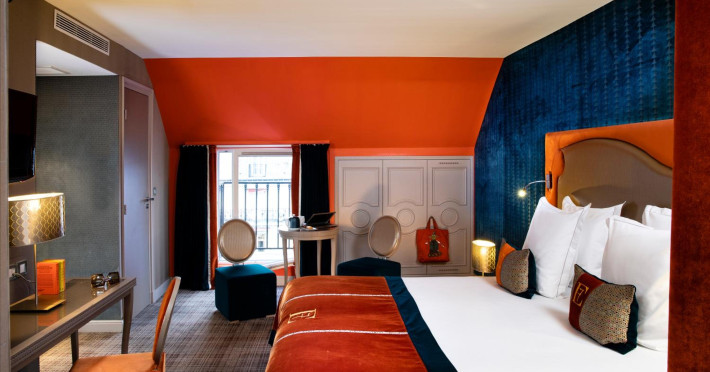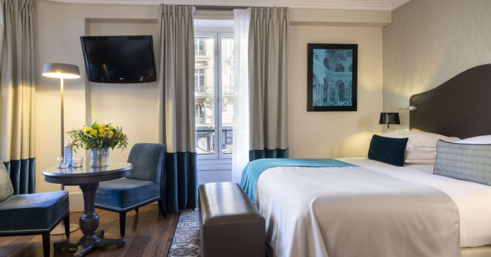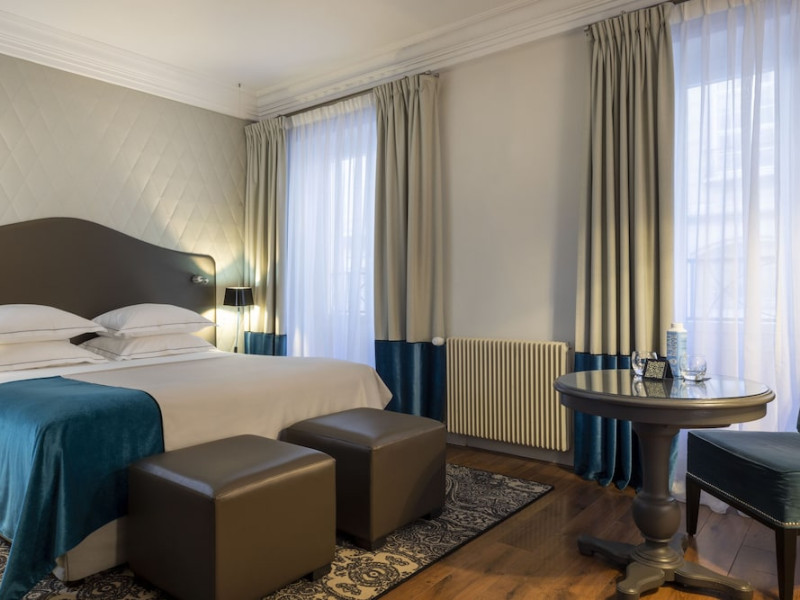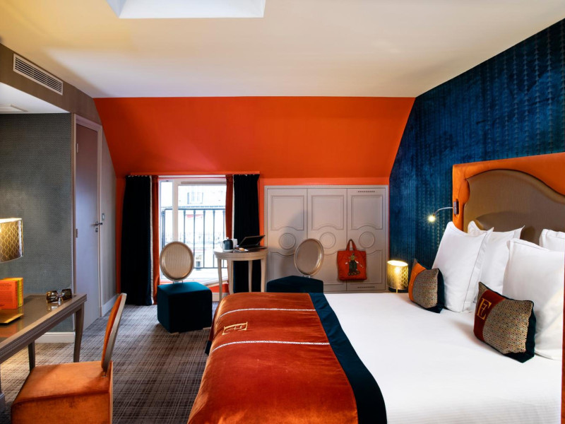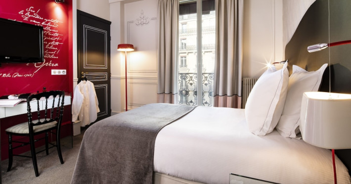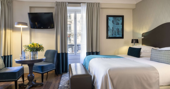 Located in central Paris near Grands Boulevards and Place de l’Opéra, Hôtel Edouard 7 Paris Opéra is an eco-certified hotel offering 69 air-conditioned rooms. Each room features complimentary wireless internet access, a flat-screen television with satellite programming, a minibar, a private bathroom with a bathtub or shower, complimentary toiletries, a hairdryer, a safe, a desk, and a phone with free local calls. Guests can enjoy French cuisine at La Cuisine de l’E7 restaurant, which offers organic and seasonal menus, or take advantage of 24-hour room service. A buffet breakfast is available for a surcharge. The hotel also features a bar/lounge, a fitness center, concierge services, a business center, limo/town car service, complimentary newspapers in the lobby, babysitting (surcharge), a banquet hall, currency exchange, luggage storage, laundry and dry cleaning services, and ticket and tour assistance. Shuttle service is available for a surcharge. The hotel provides conference space, meeting rooms and accessible parking. This is a non-smoking property with designated smoking areas. Additional amenities include massage, salon, and sauna services.