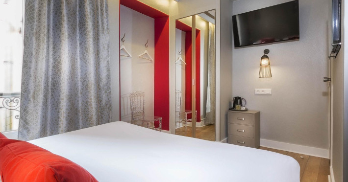 This non-smoking hotel comprises 33 air-conditioned rooms spread over 5 floors. Some rooms feature a brand new decor with modern furniture, parquet flooring, and comfortable indirect lighting. All rooms boast large double beds with top quality mattresses and duvets. Each room is equipped with a flat-screen television, telephone, desk, safe, and complimentary wireless internet access. Private bathrooms include a shower (some with bathtubs), hairdryer, and complimentary toiletries. Select rooms also offer a mini-bar.
