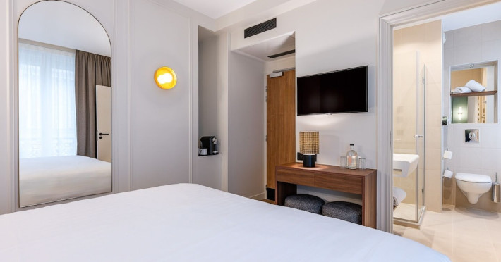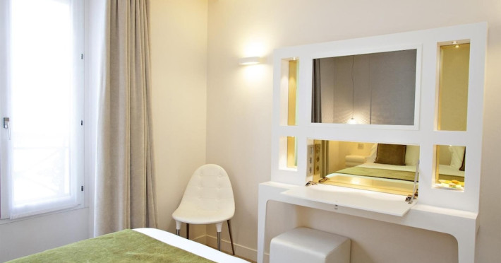 Centrally located in Paris, Hotel Elysée Secret is steps from Rue du Faubourg Saint-Honoré and a short walk from the Champs-Élysées. This eco-certified, non-smoking hotel offers 26 air-conditioned guestrooms with complimentary Wi-Fi, flat-screen TVs with satellite programming, and minibars. Private bathrooms include bathtubs or showers, complimentary toiletries, and hair dryers. Some rooms also feature coffee/tea makers and bathrobes.