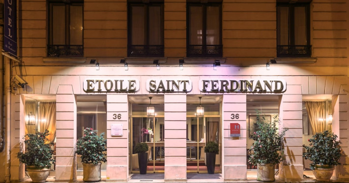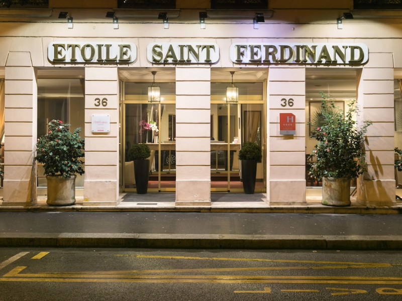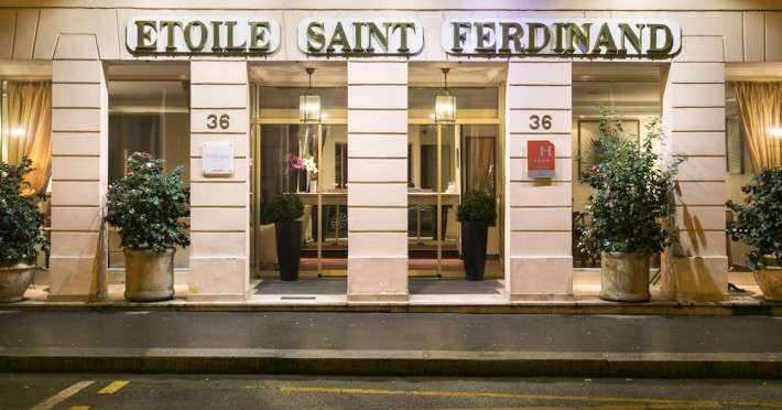 Located in Paris's 17th Arrondissement, Hôtel Etoile Saint Ferdinand by Happyculture is a 4-star hotel within walking distance of the Champs-Élysées and Arc de Triomphe. The air-conditioned rooms feature complimentary Wi-Fi, flat-screen televisions with satellite programming, safes, and coffee/tea makers. Bathrooms include complimentary toiletries and hair dryers. Guests can enjoy a drink at the bar/lounge and a daily buffet breakfast (for a fee). The hotel offers concierge services, a 24-hour front desk, luggage storage, and dry cleaning/laundry services. Self-parking is available onsite (subject to charges). The Hotel Etoile Saint Ferdinand by HappyCulture is a Tourist hotel. The nightlife/restaurants are easily accessible by taxi or bus from the hotel.