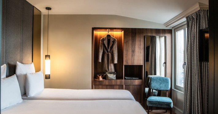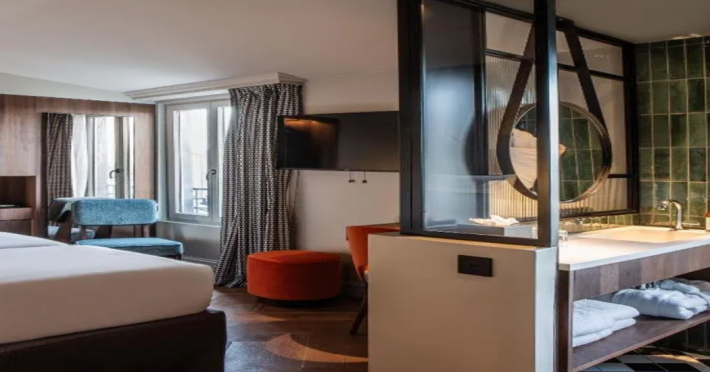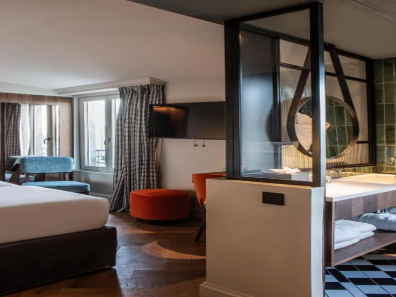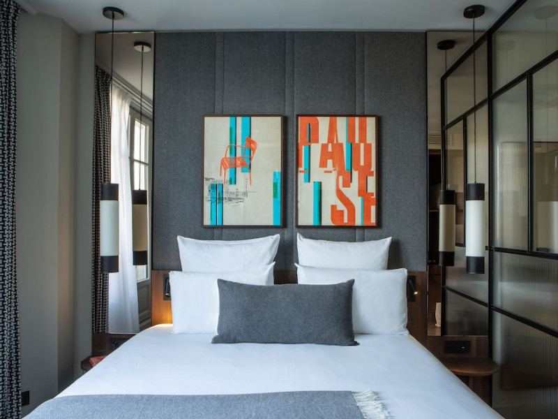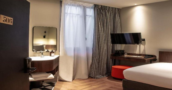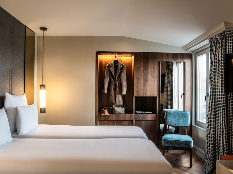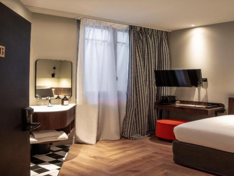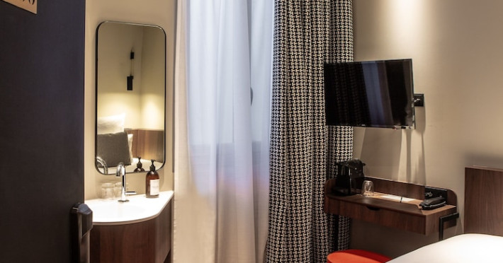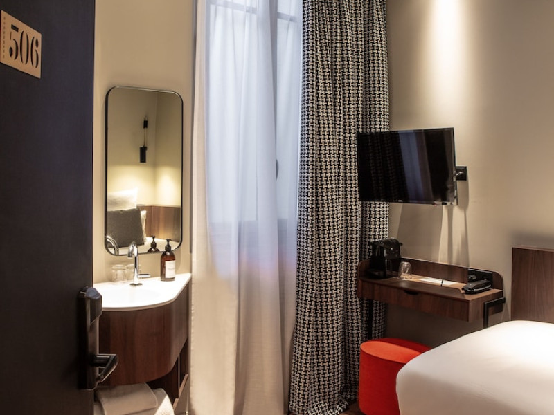 Hotel Flanelles is ideally located opposite Gare du Nord train station, a 5-minute walk from Gare de l'Est, and 30 minutes from Charles de Gaulle Airport (CDG). The hotel offers easy access to major Parisian attractions including department stores, the opera house, Louvre, Champs-Élysées, Eiffel Tower, Montmartre, Stade de France, Le Bourget, and Disneyland. All 44 air-conditioned rooms include espresso makers, LCD TVs, complimentary Wi-Fi, cable programming, private bathrooms with showers, complimentary toiletries, hair dryers, safes, and complimentary bottled water. A 24-hour front desk, luggage storage, and lockers are available. Buffet breakfast is available daily from 6:00 AM to 10:00 AM (fee applies). The hotel has received its official star rating from ATOUT France. Rooms also include phones with free local calls. Distances to nearby attractions include: Canal Saint-Martin (1.1 km), Grands Boulevards (1.2 km), Place de la République (1.4 km), Grand Rex Cinema (1.5 km), Sacré-Cœur Basilica (1.6 km), Grevin Museum (1.6 km), Boulevard Haussmann (1.7 km), Moulin Rouge (2 km), La Machine du Moulin Rouge (2 km), Galeries Lafayette (2 km), Les Halles (2.1 km), Theatre Mogador (2.1 km), Centre Pompidou (2.3 km), Parc des Buttes Chaumont (2.3 km), Palais Garnier (2.3 km). The hotel is also within a 10-minute drive of Palais Garnier and Sacré-Cœur Basilica, 2.2 mi (3.5 km) from Notre-Dame, and 2.4 mi (3.9 km) from Champs-Élysées. Paris Orly Airport (ORY) is 20.5 km away. The Hotel Flanelles Paris is a hotel.