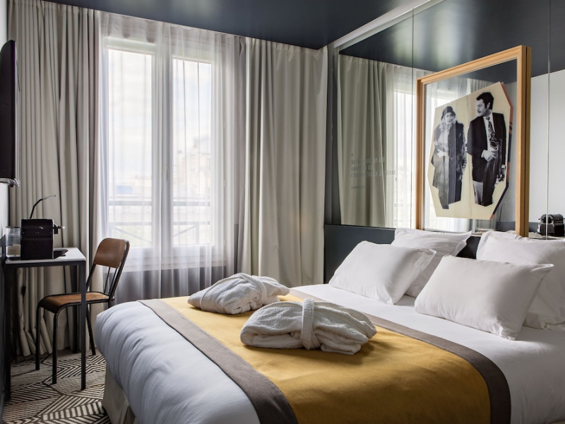 Located in Paris’ 17th arrondissement, Hôtel Gaston offers contemporary-style accommodation near the Wagram Metro station, providing easy access to attractions. The soundproofed and air-conditioned rooms feature a TV, personal safe, and a private bathroom with a bath or shower, and a hairdryer. Free high-speed WiFi is available throughout the hotel. Guests can enjoy room service and elevator access. A buffet or express breakfast is served daily for a fee. The 24-hour reception offers concierge service, express check-in/check-out, luggage storage, and safety deposit boxes. Additional amenities include a vending machine, gift shops/newsstands, babysitting (surcharge), ticket service, tours assistance, and laundry service. The hotel also offers an airport shuttle for an additional cost, and self-parking is available (surcharge). The corridors and lobby feature artistic decor by the Splendens Factory community. The Hotel Gaston is a Tourist hotel. The nightlife/restaurants are easily accessible by taxi or bus from the hotel.