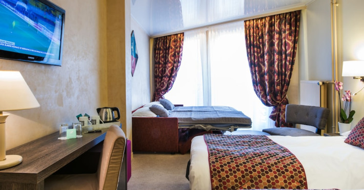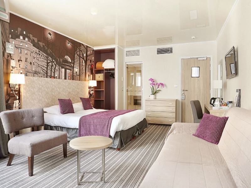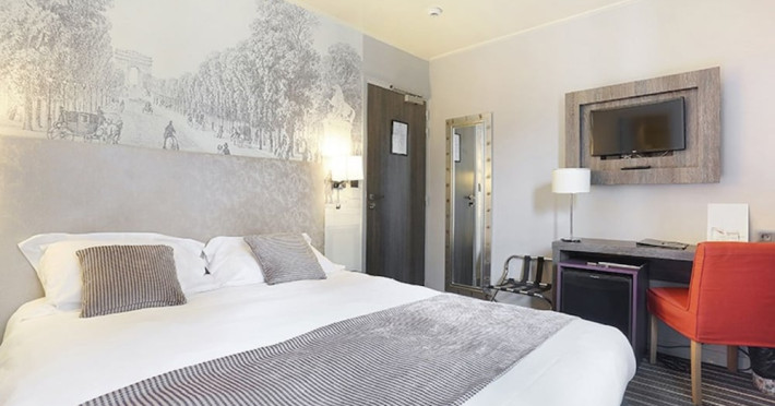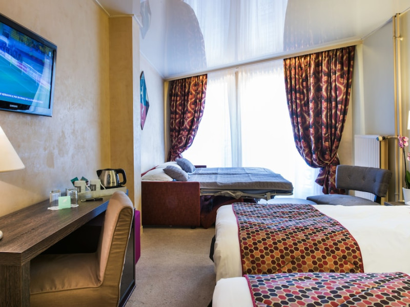 Located near the Palais des Congrès and a short distance from the Arc de Triomphe and Champs-Élysées, Hotel Harvey offers 31 individually decorated rooms. Guests can enjoy complimentary Wi-Fi, multilingual staff, and daily housekeeping. Rooms are air-conditioned and feature flat-screen TVs and private bathrooms with complimentary toiletries and hair dryers. The hotel provides a 24-hour reception, concierge services, and room service during limited hours. A breakfast buffet is available. Additional amenities include a bar/lounge, express check-in/check-out, luggage storage, a ticket service, and laundry service. An airport shuttle is available for a surcharge. The Hotel Harvey is a Business, City hotel, Pet Friendly, Tourist, Traditional hotel. Located in Paris area. The nightlife/restaurants are easily accessible by taxi or bus from the hotel.
