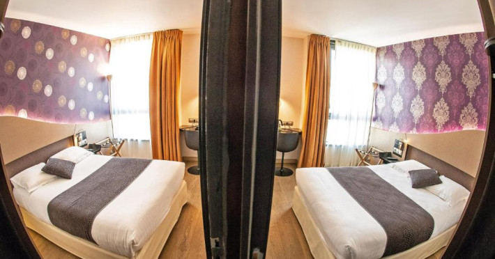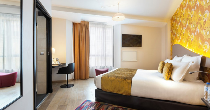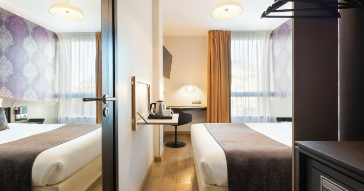 Located in the heart of Paris, this hotel offers a terrace, garden, and complimentary Wi-Fi. Guests can enjoy concierge services, a fireplace in the lobby, and a banquet hall. An area shuttle is available for a surcharge. Dining options include a coffee shop/cafe and a bar/lounge, with room service available. A buffet breakfast is offered for a fee. Featured amenities include a business center, express check-in, and complimentary newspapers in the lobby. The hotel provides 753 square feet (70 square meters) of conference space with 2 meeting rooms. An airport shuttle is available 24 hours a day for a surcharge. Individually furnished guestrooms feature refrigerators, minibars, LCD TVs with satellite programming, and private bathrooms with rainfall showerheads and complimentary toiletries. Rooms also include phones, safes, and desks. Select rooms may offer a balcony or terrace. The hotel provides daily housekeeping, laundry service, and dry cleaning. Additional amenities include luggage storage, ticket service, tours, car hire, taxi service, on-site parking, and a fitness center. Smoking is restricted to designated areas. Some rooms include linen service, blackout curtains, and air conditioning. Select rooms may also include a coffee/tea maker, bottled water, and instant coffee/tea. The Hotel Hor Europe is a hotel. Located in Paris area.