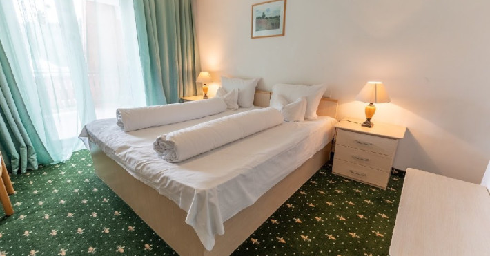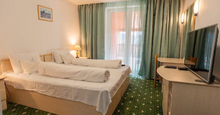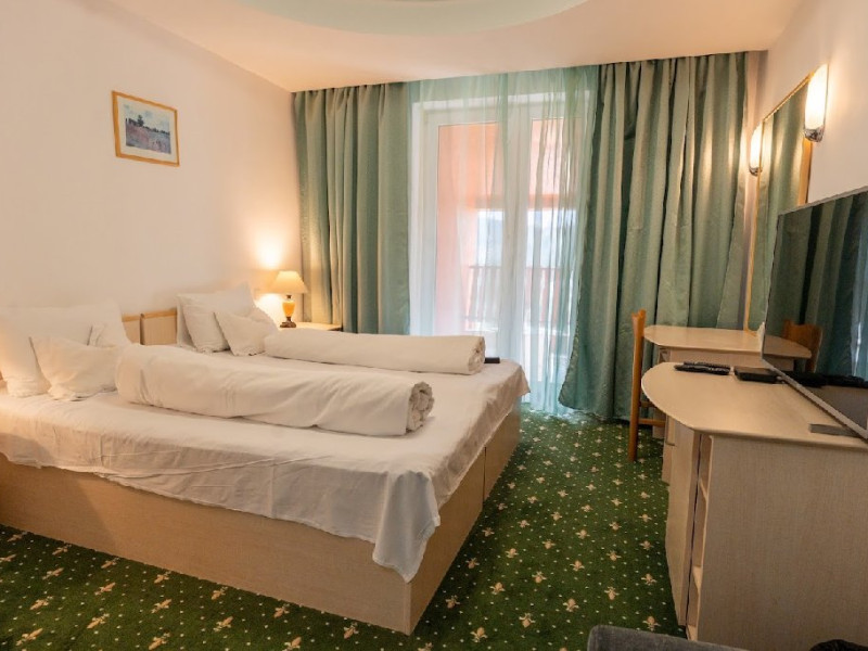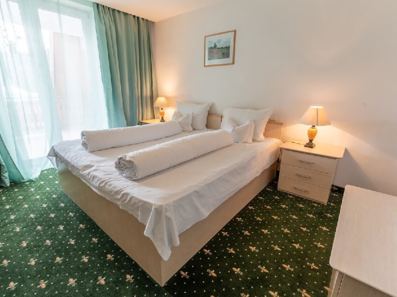 Situat in centrul statiunii la aproximativ 1100 m altitudine si la 300 m de partie. Parcul de aventura Happy Land si Dino Parc sunt la aproximativ 5 minute de mers pe jos. Hotelul dispune de 40 camere, restaurant, bar de zi, sala de conferinte, parcare. Restaurant propriu Mic dejun - variante de meniu Pranz si cina - in sistem fisa cont Hotelul dispune de 36 camere duble, 4 camere triple si 4 apartamente Camerele sunt dotate cu: TV, telefon, racitor si grup sanitar propriu. Camera dubla - toate camerele sunt twin; paturile se pot apropia Camera tripla - dotata cu 3 paturi Apartamentul - dormitor cu pat matrimonial si living cu canapea extensibila. Unele camere au balcon, repartizare se face la receptie in functie de disponibilitate. Copii 0-3 ani au gratuitate la cazare fara a beneficia de mic dejun. Copii 3-8 ani au gratuitate la cazare si achita integral contravaloarea micului dejun