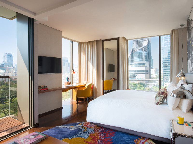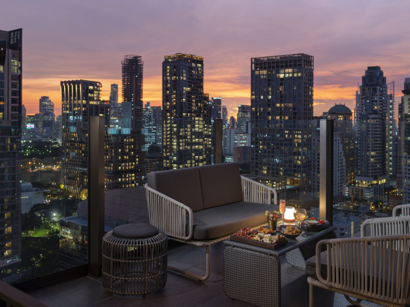 At Hotel Indigo® Bangkok Wireless Road, our stylish rooms offer amazing downtown Bangkok city views while combining vintage details and modern materials to share our neighbourhood’s story of the "Golden Age of Broadcast", contrasting technology and tradition. Every floor and every room pays homage to our community with design touches and artworks inspired by the uniqueness of Thailand. See if you can spot them all!Located in central Bangkok, the tree-lined lushness of Wireless Road and verdant gardens surrounding the nearby embassies will make you feel relaxed and at home. Yet you are still in walking distance to Lumpini Park, high-end shopping, and local favourites from the down-home Polo Chicken to upscale restaurants and bustling food markets by the Rolex shop (ask the team for directions!). Our team is always available to aid your pursuit of "sanuk", the fun in life. Stunning city vistas can be enjoyed at the infinity-edge swimming pool on the 24th floor from morning, sunset, to nightfall. Our neighbourhood cafe, Metro on Wireless, showcases the best local Thai cuisine, as well as tasty international options. CHAR Restaurant & Rooftop Bar presents delectable modern brasserie dishes and drinks with a view. We also offer convenient, modern, and inspiring meeting and event spaces for any occasion.