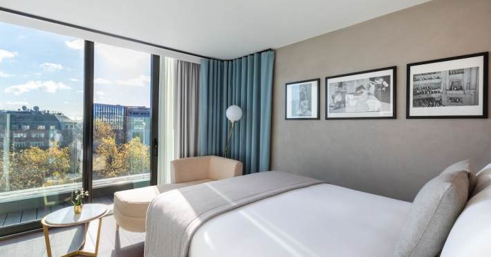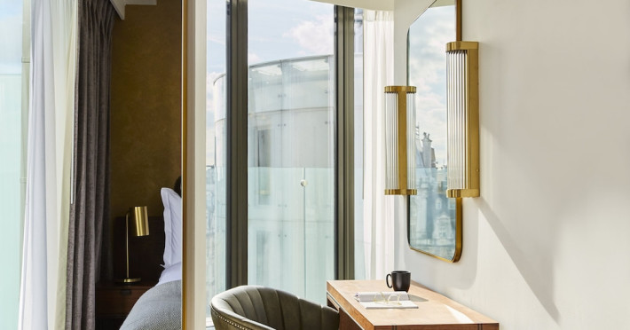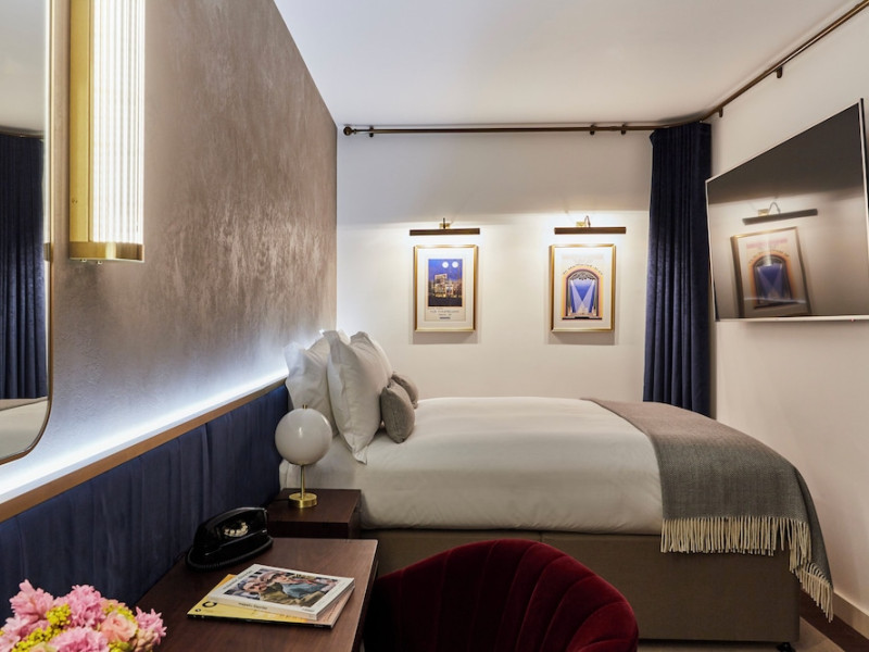 Hotel Indigo London - 1 Leicester Square, centrally located in London's West End on Leicester Square, offers an art deco haven inspired by the surrounding theatrical district. The hotel features bespoke rooms with framed scripts and stage lighting. Guests can enjoy complimentary wireless internet access, concierge services, and a 24-hour front desk. Dining options include a restaurant, room service (during limited hours), and a bar/lounge. Cooked-to-order breakfasts are available daily (for a fee). Each of the 102 guestrooms includes a refrigerator, LCD television with cable programming, a private bathroom with a rainfall showerhead and designer toiletries, a safe, and a desk. Popular nearby attractions include Piccadilly Circus, Regent Street, the National Gallery, Trafalgar Square, Covent Garden, and Buckingham Palace.