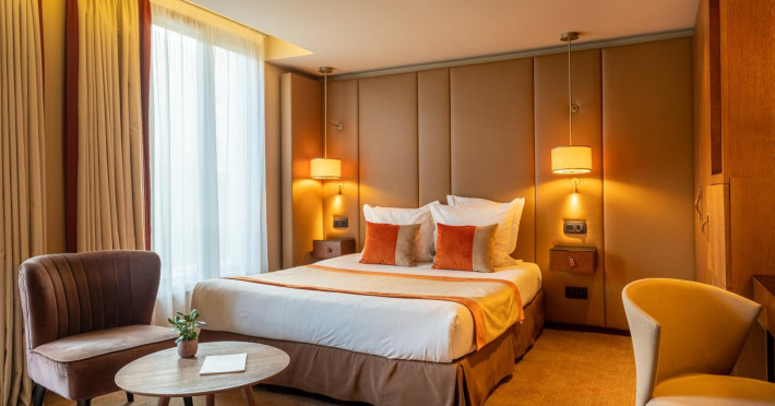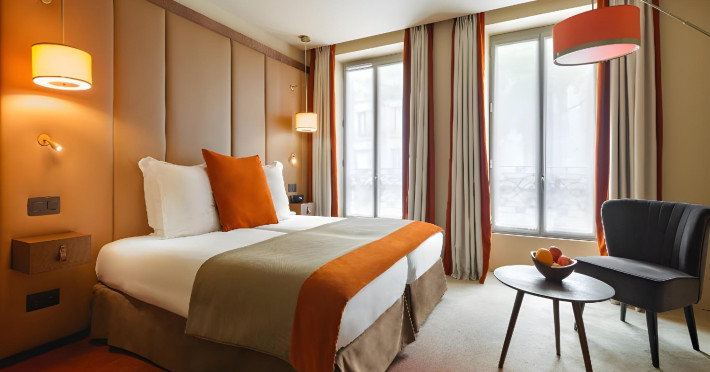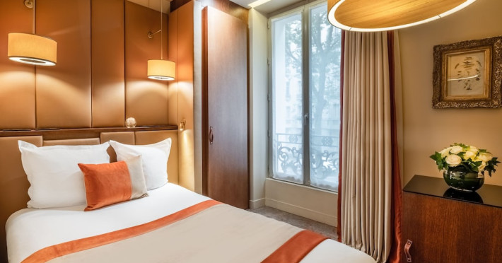 Hôtel La Bourdonnais by Inwood Hotels offers 53 air-conditioned rooms with flat-screen TVs, satellite programming, and complimentary Wi-Fi. Private bathrooms include bathtubs or showers with rainfall showerheads and designer toiletries. Amenities include a 24-hour front desk, concierge service, room service (limited hours), a bar/lounge, dry cleaning/laundry services, a computer station, and luggage storage. A buffet breakfast is available daily (fee applies). Limited on-site parking is available, but is closed seasonally (July 1st - September 15th). The hotel features meeting facilities and a conference center. Located in central Paris, it's a short walk from the Eiffel Tower, Champ de Mars, Rue Cler, and Les Invalides. Ecole Militaire Metro Station (Line 8) is 200 meters away. Babysitting services are available (surcharge). The hotel is officially rated by ATOUT France. The Hotel La Bourdonnais by Inwood Hotels is a Child Friendly, City hotel, Honeymoon, Leisure, Pet Friendly, Tourist hotel. The nightlife/restaurants are within walking distance from the hotel.