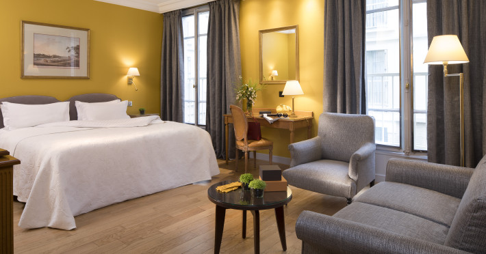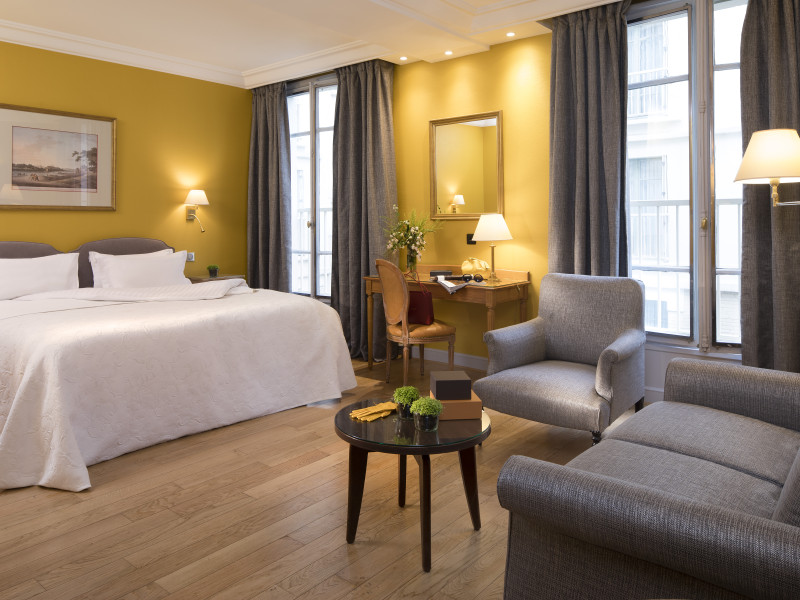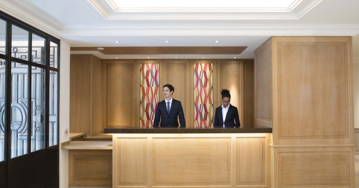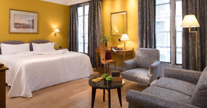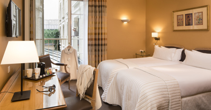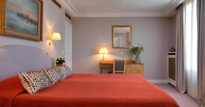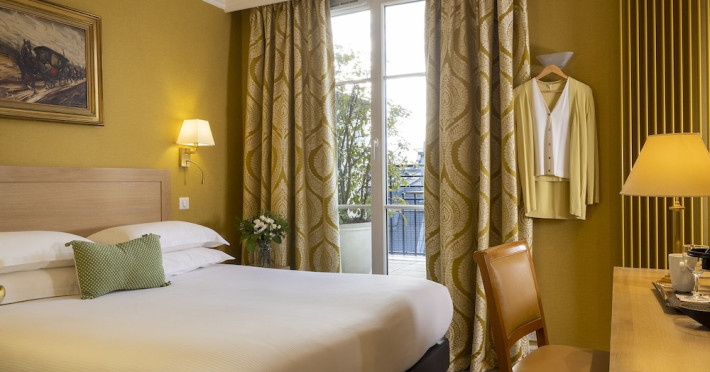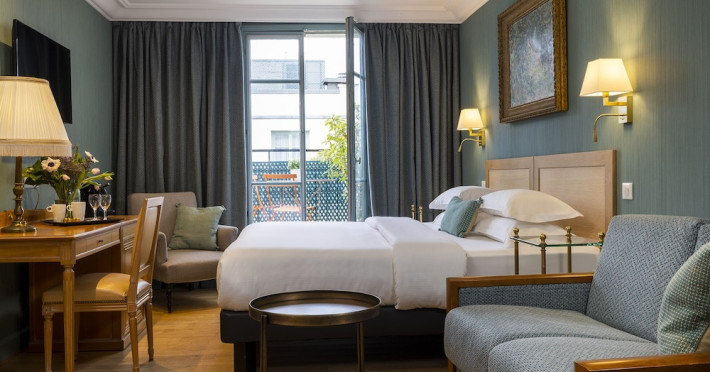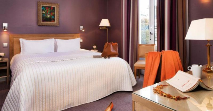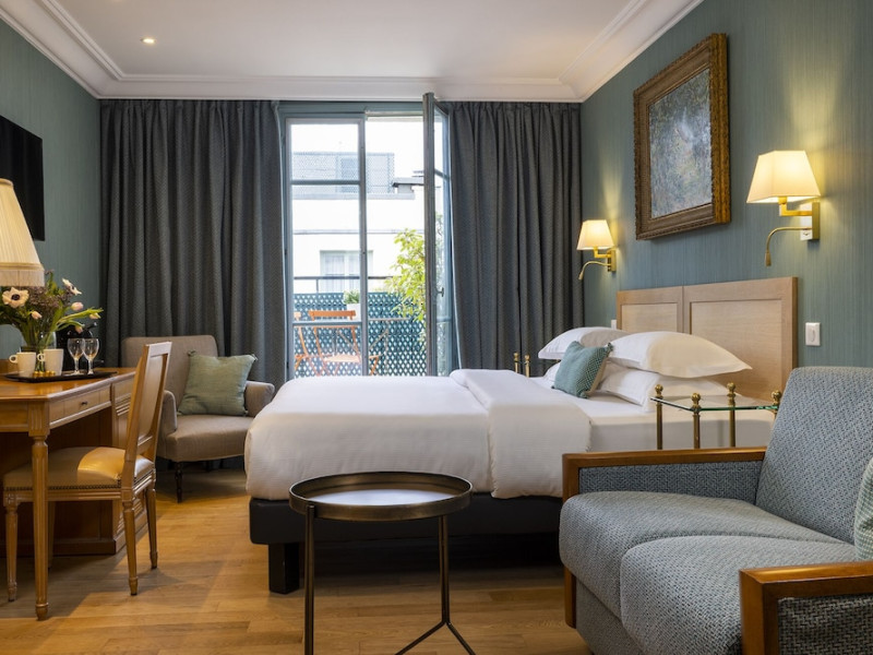 Hôtel Le Littré is a charming, classically French-styled hotel located in central Paris, between Saint-Germain-des-Prés and Montparnasse, 100 meters from the Rue de Rennes shopping district. Built in 1924, it offers 90 individually decorated rooms, including 11 suites. The hotel features complimentary Wi-Fi, a bar, a 24-hour business center with conference facilities (60 square meters), a sauna, and a concierge service. Babysitting is available for a surcharge. A buffet breakfast (fee applies) is served daily from 7 AM to 10:30 AM, offering American, gluten-free, and continental options. Room service is available during limited hours. Additional amenities include a lift, laundry/dry cleaning service, self-parking (fee applies), and a 24-hour airport shuttle (surcharge). Many rooms offer minibars, plasma televisions, and satellite programming. Private bathrooms include shower/tub combinations, complimentary toiletries, and bidets. Nearby attractions include the Montparnasse Tower (0.5 km), Luxembourg Gardens (1.5 km), and the Louvre Museum (2.3 km). The nearest metro stations are Saint Placide and Montparnasse. The preferred airport is Charles de Gaulle (CDG), approximately 38.9 km away. Paris Orly Airport (ORY) is 14.8 km away. The Hotel Le Littre is a Tourist hotel. The nightlife/restaurants are easily accessible by taxi or bus from the hotel.