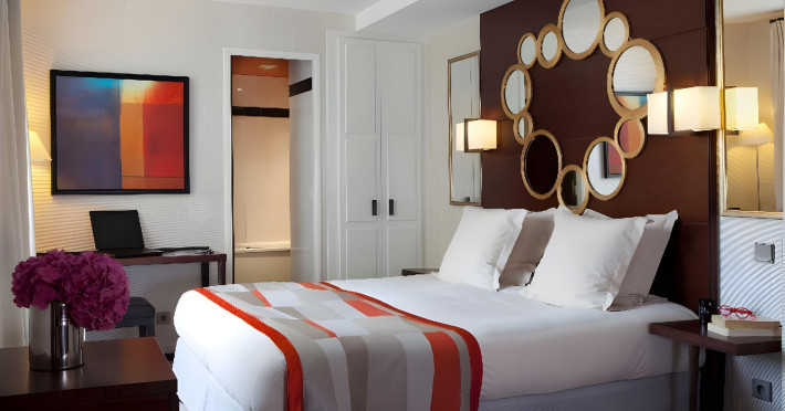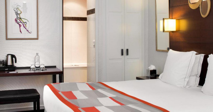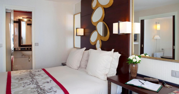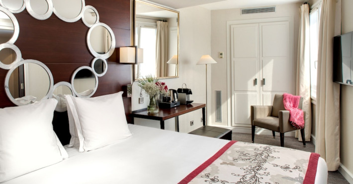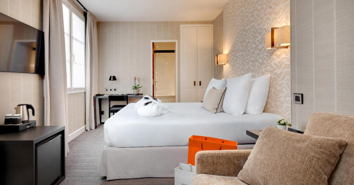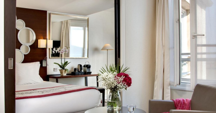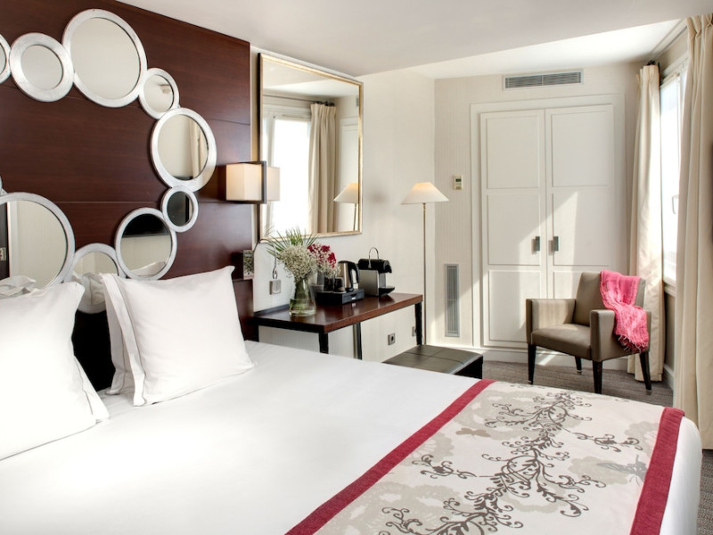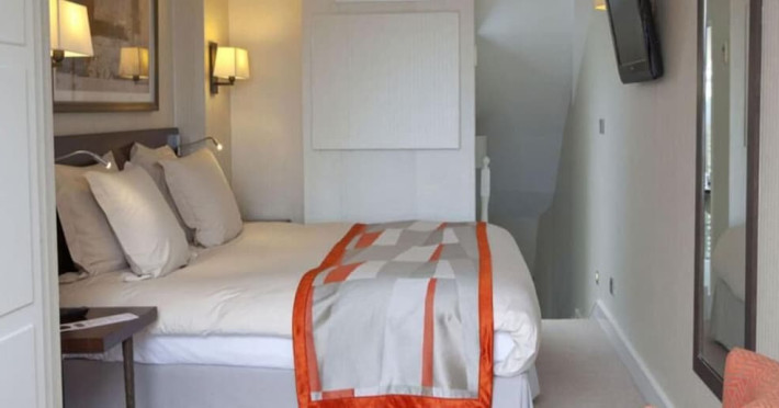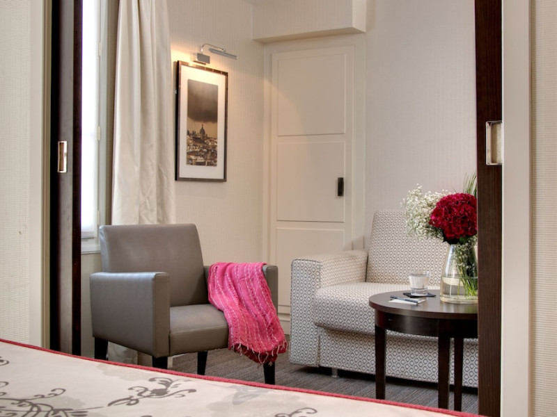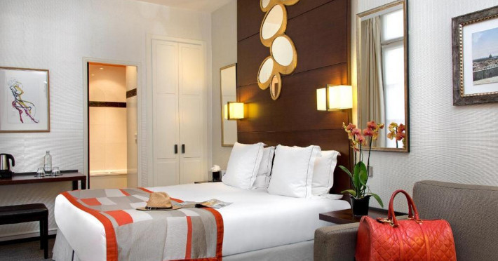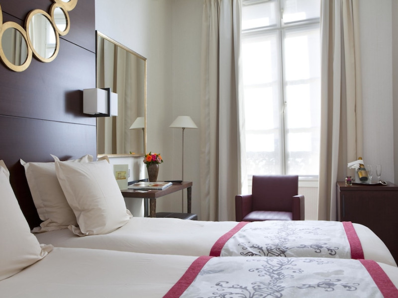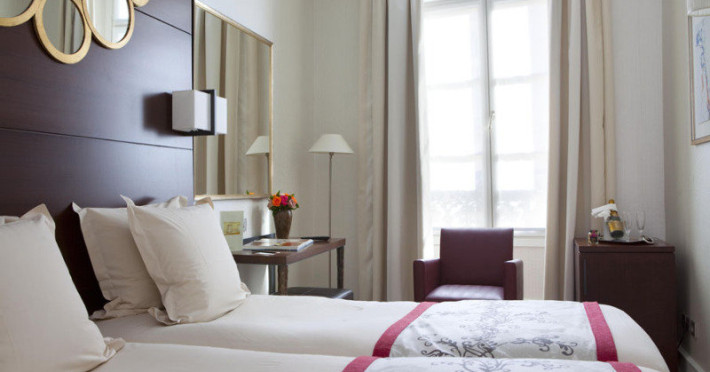 Located between the Latin Quarter and Saint-Germain-des-Près, Hotel Le Senat is a short walk from the Luxembourg Gardens. It offers a bar, a reading room, and a breakfast buffet. Some rooms have a balcony. Amenities include a flat-screen TV with satellite channels and free Wi-Fi. Services such as a 24-hour desk, concierge, express check-in/out, luggage storage, room service, laundry service, and tours assistance are available. The hotel is serviced by a lift and is entirely non-smoking. The Hotel Le Senat is a Tourist hotel. The nightlife/restaurants are easily accessible by taxi or bus from the hotel.