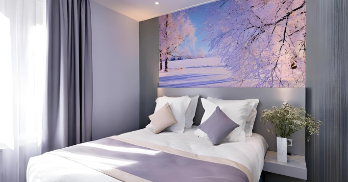 The hotel is close to the Jules Joffrin Metro station, providing easy access to the city. Airport shuttle, taxi, laundry, dry cleaning, ticket, and tour services are available. Nearby attractions include Sacré-Cœur Basilica, Moulin Rouge, La Machine du Moulin Rouge, Place de Clichy, Theatre Mogador, Galeries Lafayette, Grands Boulevards, Grevin Museum, Boulevard Haussmann, Palais Garnier, Printemps Department Store, Canal Saint-Martin, Grand Rex Cinema, Paris Olympia, and Parc Monceau. The Hotel les Jardins de Montmartre is a hotel.
