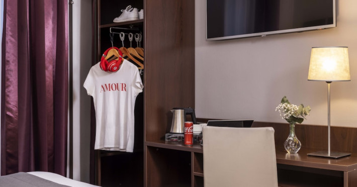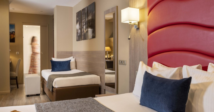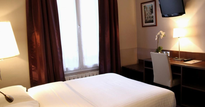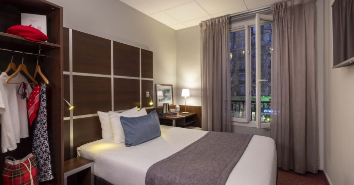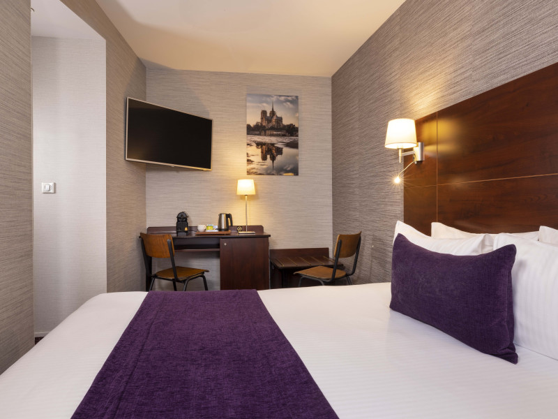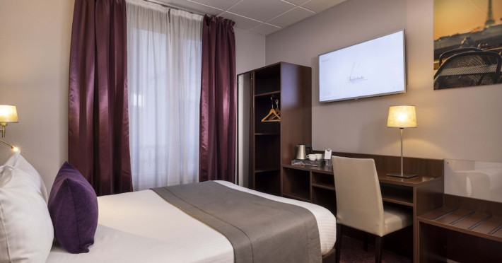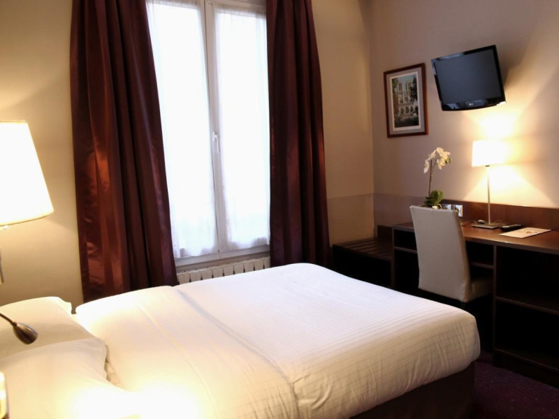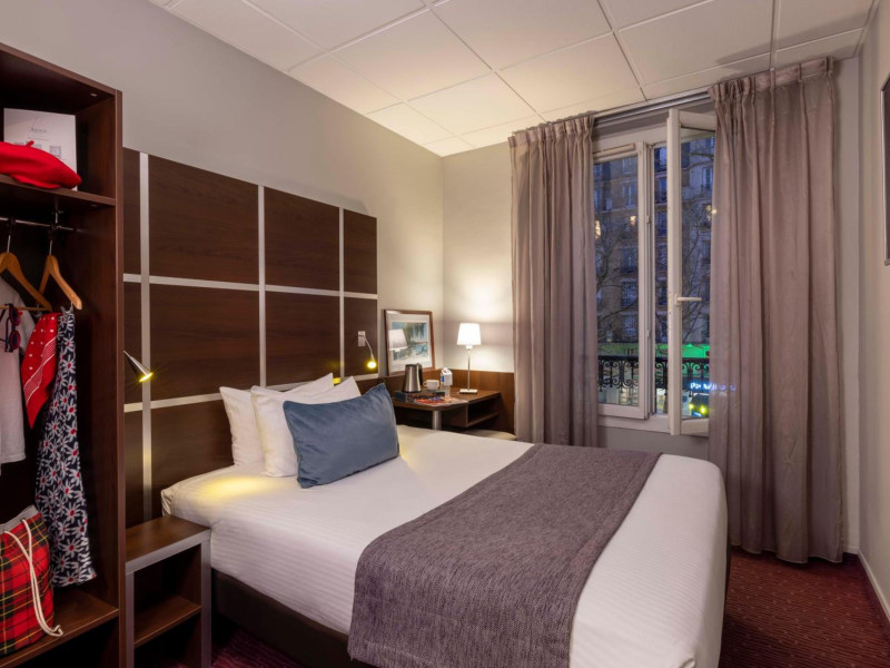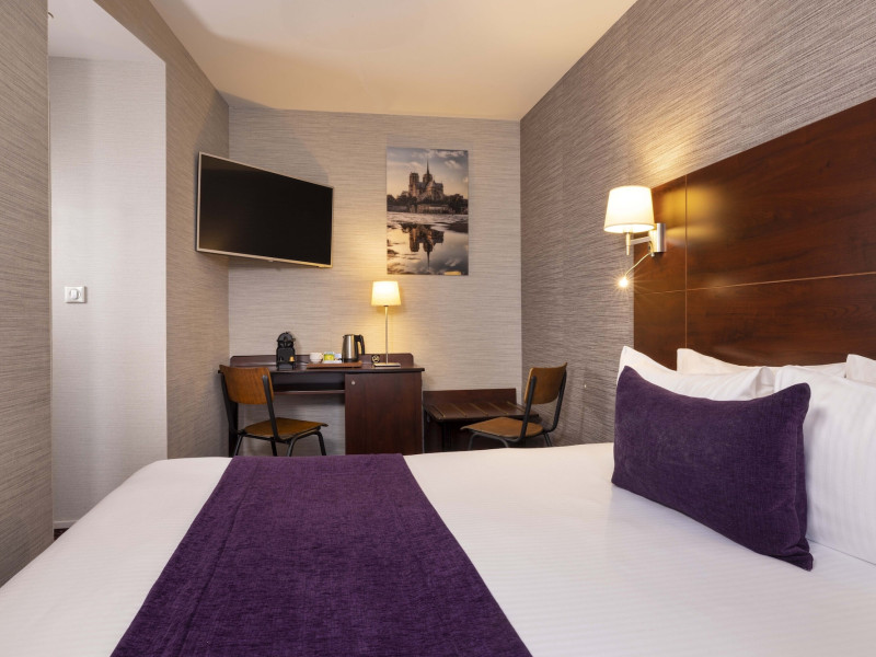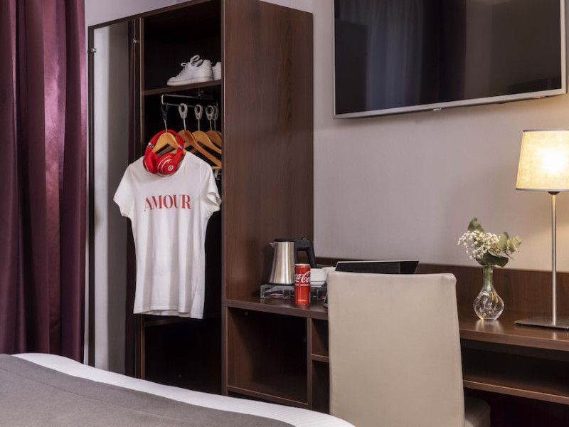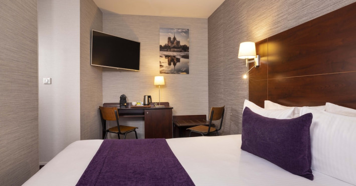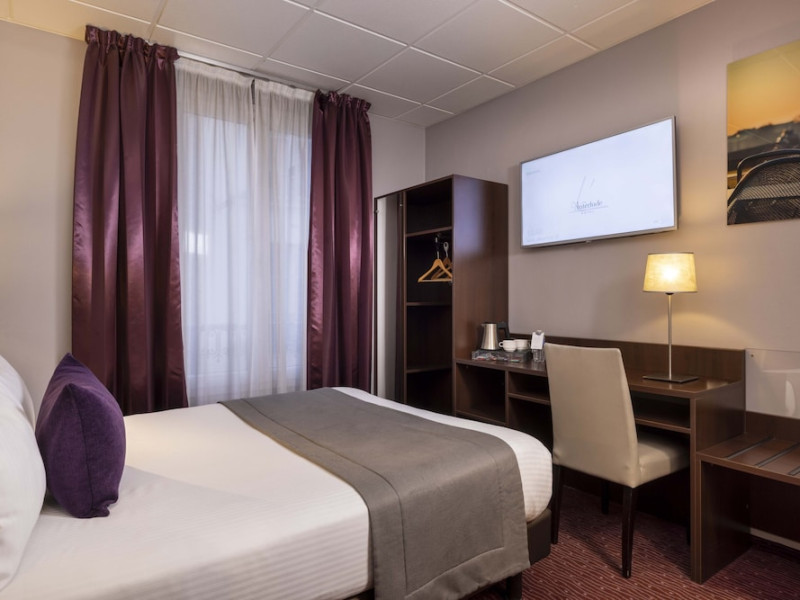 Located in Paris's 12th Arrondissement (Bercy district), near Bois de Vincennes and Place Daumesnil, the eco-certified Hotel L'Interlude offers 44 air-conditioned rooms with free unlimited Wi-Fi. The hotel is close to the Michel Bizot metro stop, providing easy access to central Paris, Bercy Arena, and other attractions. Rooms feature flat-screen TVs, private bathrooms with complimentary toiletries and hair dryers, and desks. A buffet breakfast is available daily from 7:00 AM to 10:00 for a fee. Amenities include a 24-hour front desk, computer station, vending machine, tour/ticket assistance, luggage storage, and safety deposit boxes. Room service is available during limited hours. Airport transportation can be arranged prior to arrival. The hotel is completely smoke-free. Paris Orly (ORY) and Charles de Gaulle (CDG) are the nearest airports. The Hotel L'interlude is a Tourist hotel. The nightlife/restaurants are easily accessible by taxi or bus from the hotel.