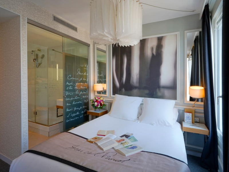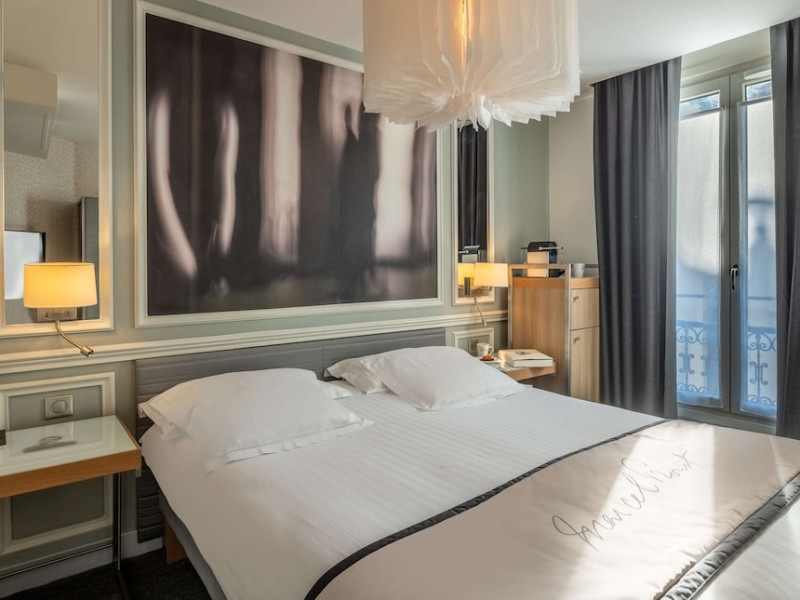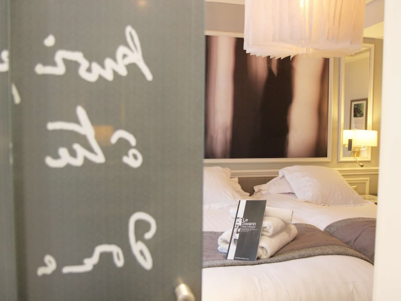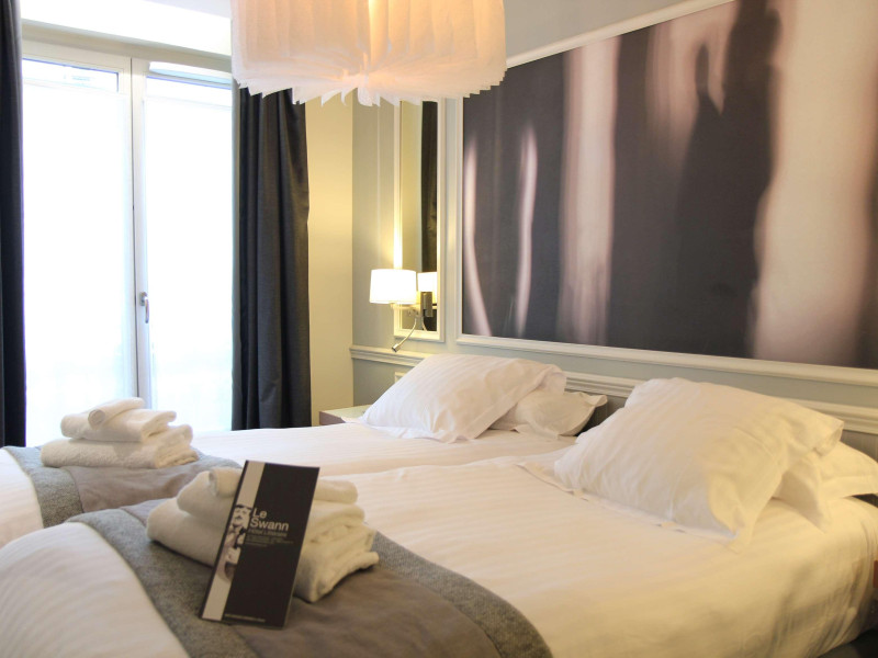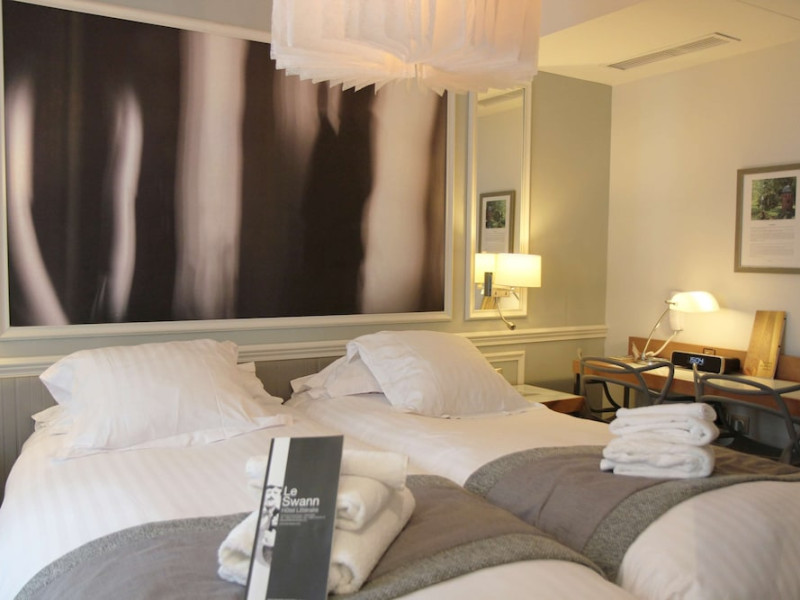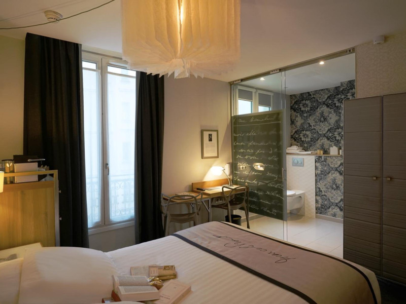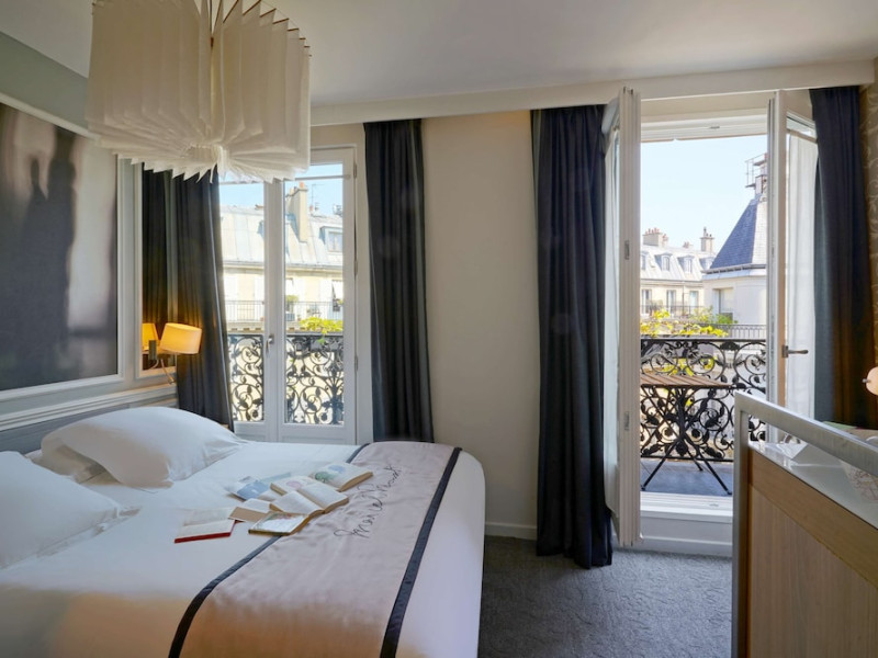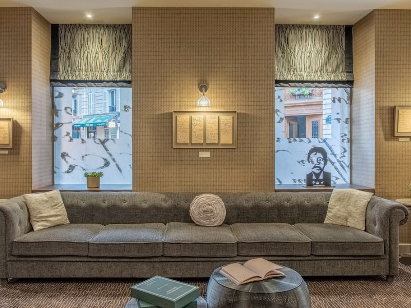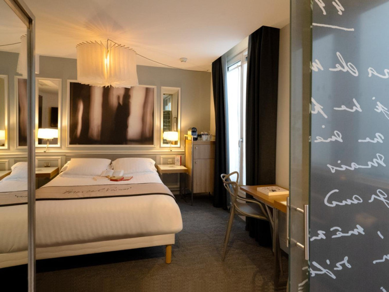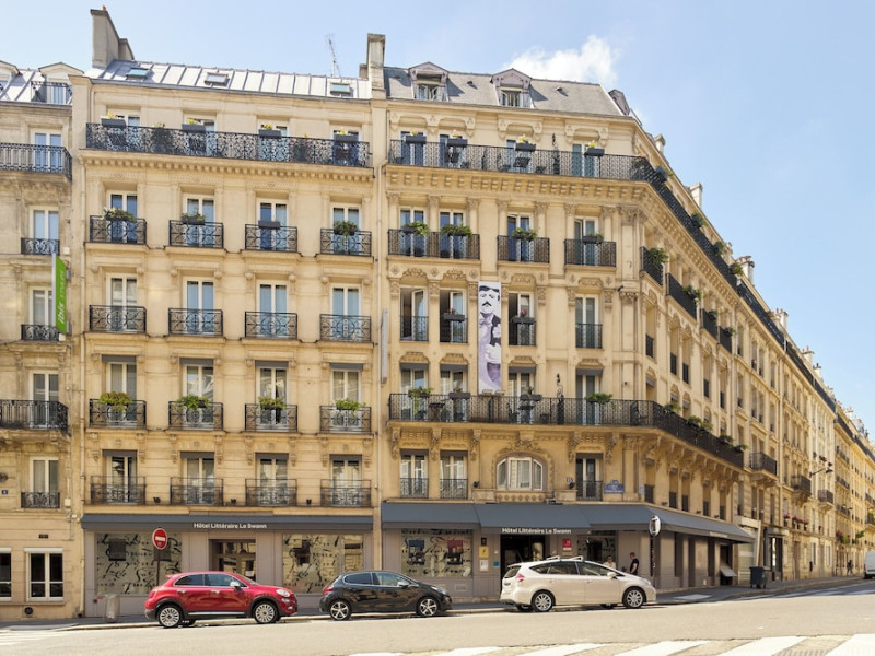 The Hôtel Littéraire Le Swann, BW Premier Collection, a fully refurbished 19th-century hotel (awarded at the 1898 World's Fair), is located in Paris' historic Luthier district, minutes from Gare Saint Lazare train station. This eco-certified hotel offers 81 air-conditioned rooms with flat-screen televisions, iPod docking stations, deep soaking bathtubs, rainfall showerheads, laptop-compatible safes, and complimentary newspapers. Amenities include complimentary wired and wireless internet access, a business center, a full-service spa, a bar/lounge, a snack bar/deli, room service (limited hours), a banquet hall, concierge services, and express check-out. A diverse buffet breakfast is served daily (7 AM to 10:30 AM, fee applies). The hotel features a lovely lobby under an Art Deco glass ceiling and a literary theme honoring Marcel Proust. Nearby attractions include Parc Monceau, Boulevard Haussmann, Place de Clichy, Theatre Mogador, Printemps Department Store, Galeries Lafayette, Rue du Faubourg Saint-Honore, Grands Boulevards, Palais Garnier, Moulin Rouge, La Machine du Moulin Rouge, Place de la Madeleine, Paris Olympia, Rue de Rivoli, Champs-Élysées, and easy access to La Défense, western suburbs, and other major tourist attractions. Metro Station Europe is a 2-minute walk away. The nearest airports are Paris Orly (ORY), Paris Charles de Gaulle (CDG), Paris Beauvais (BVA), and Paris (XCR-Chalons-Vatry). The Hotel Litteraire Le Swann, Bw Premier Collection is a Tourist hotel. The nightlife/restaurants are located in the hotel.