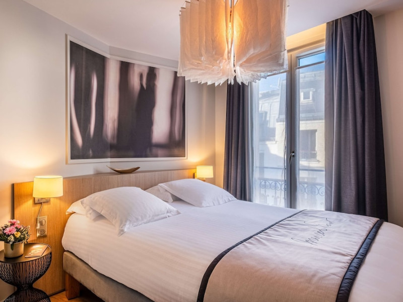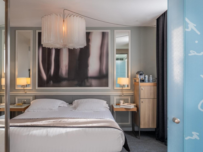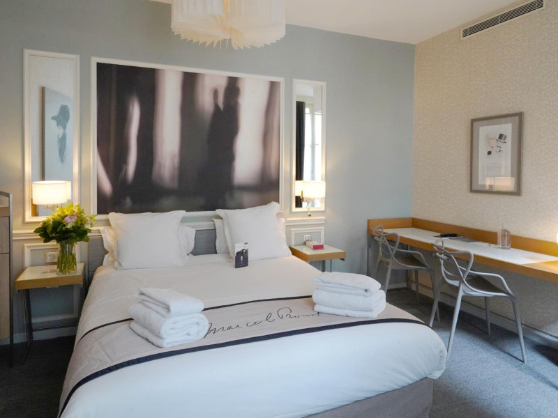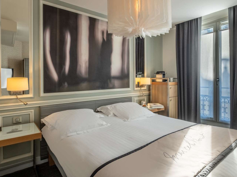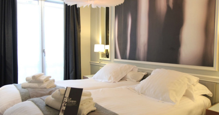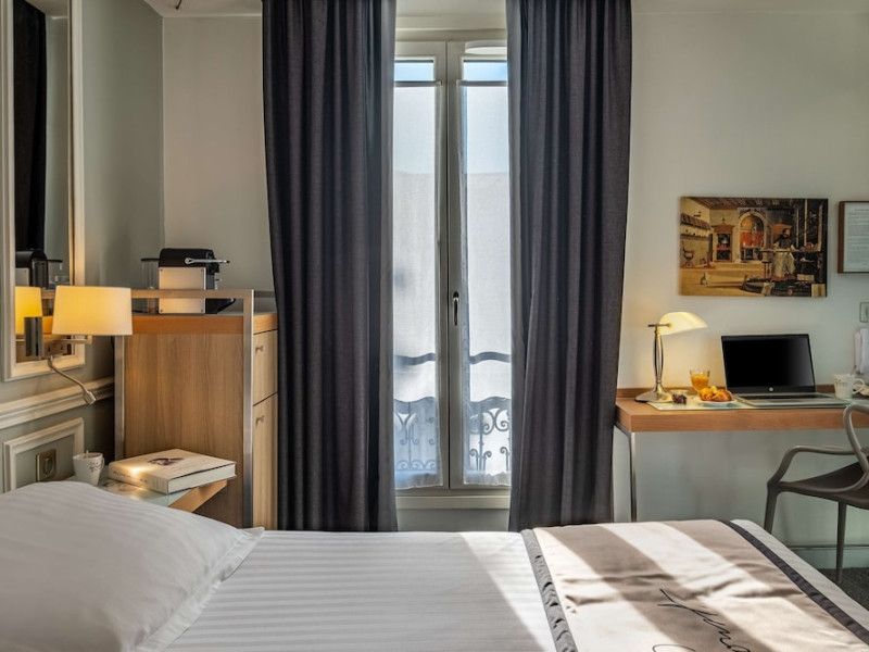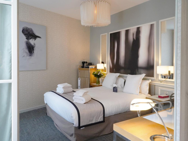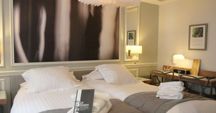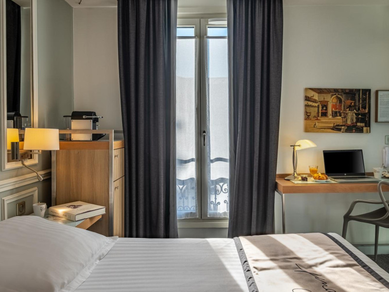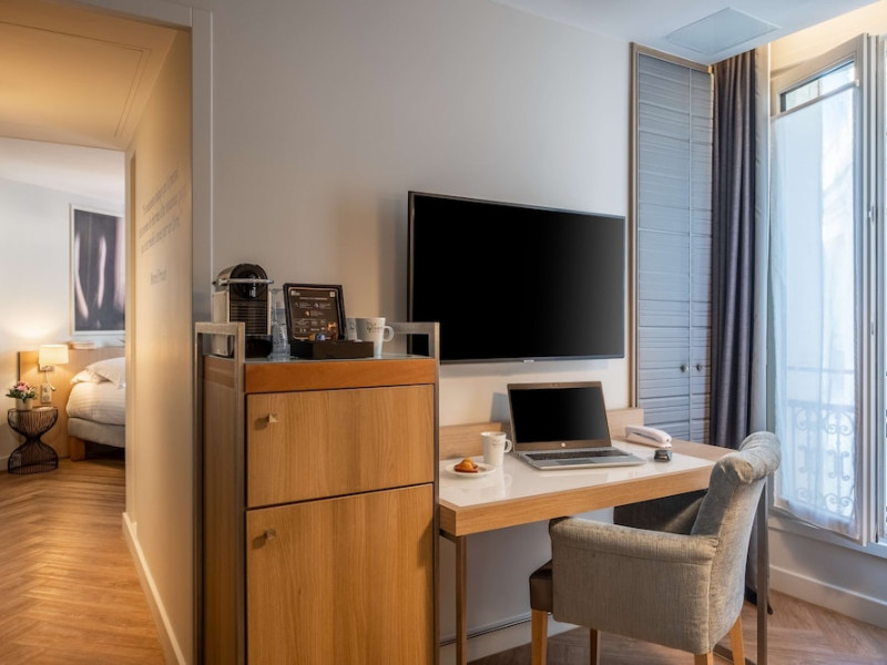 The Hôtel Littéraire Le Swann, BW Premier Collection, a fully refurbished 19th-century hotel (awarded at the 1898 World's Fair), is located in Paris' historic Luthier district, minutes from Gare Saint Lazare train station. This eco-certified hotel offers 81 air-conditioned rooms with flat-screen televisions, iPod docking stations, deep soaking bathtubs, rainfall showerheads, laptop-compatible safes, and complimentary newspapers. Amenities include complimentary wired and wireless internet access, a business center, a full-service spa, a bar/lounge, a snack bar/deli, room service (limited hours), a banquet hall, concierge services, and express check-out. A diverse buffet breakfast is served daily (7 AM to 10:30 AM, fee applies). The hotel features a lovely lobby under an Art Deco glass ceiling and a literary theme honoring Marcel Proust. Nearby attractions include Parc Monceau, Boulevard Haussmann, Place de Clichy, Theatre Mogador, Printemps Department Store, Galeries Lafayette, Rue du Faubourg Saint-Honore, Grands Boulevards, Palais Garnier, Moulin Rouge, La Machine du Moulin Rouge, Place de la Madeleine, Paris Olympia, Rue de Rivoli, Champs-Élysées, and easy access to La Défense, western suburbs, and other major tourist attractions. Metro Station Europe is a 2-minute walk away. The nearest airports are Paris Orly (ORY), Paris Charles de Gaulle (CDG), Paris Beauvais (BVA), and Paris (XCR-Chalons-Vatry). The Hotel Litteraire Le Swann, Bw Premier Collection is a Tourist hotel. The nightlife/restaurants are located in the hotel.